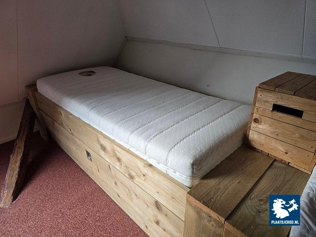 1 x Complete slaapkamer inrichting waaronder 2 x steigerhouten bed, 3-deurs kast, bureau, etc.