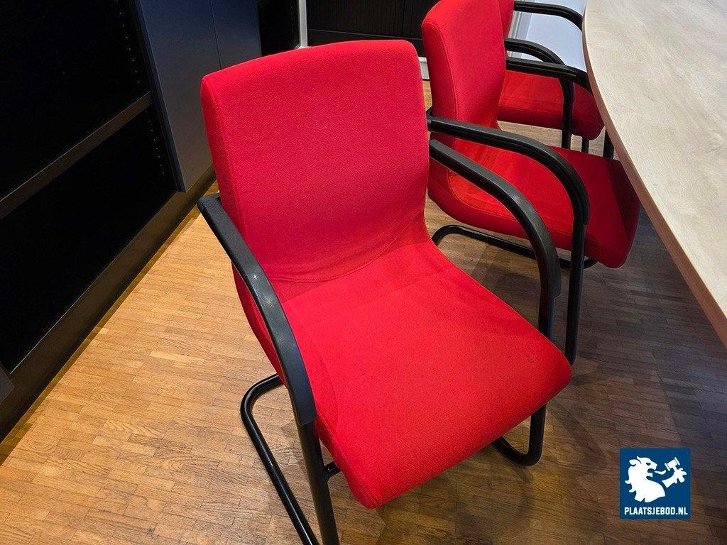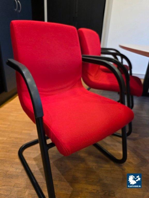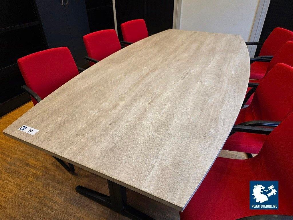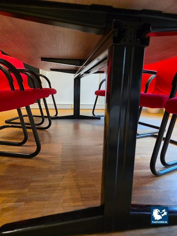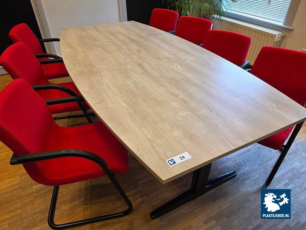 1 x Conferentietafel ca. 240 x 120 cm met 7 x rood gestoffeerde stoel met armleggers