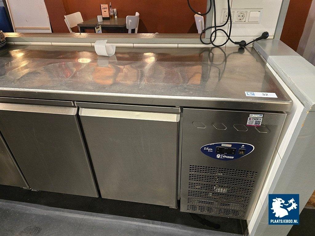 Kavel 292-032: 1 x Desmon, RVS koelwerkbank, 4 deuren, afm.: 227 x 70 cm.