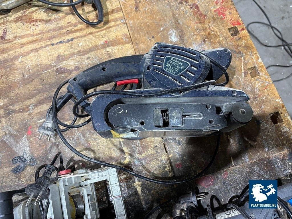 1 x Diverse elektrische handgereedschappen waaronder een bandschuurmachine, reciprozaag en lamello frees