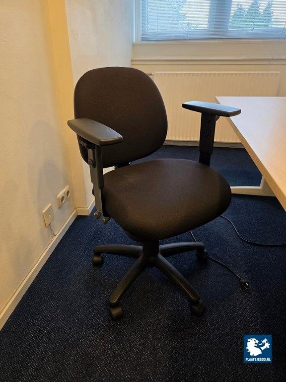 1 x Elektrisch in hoogte verstelbaar bureau ca. 180 x 90 cm met verrijdbare gasgeveerde bureaustoel met armleggers