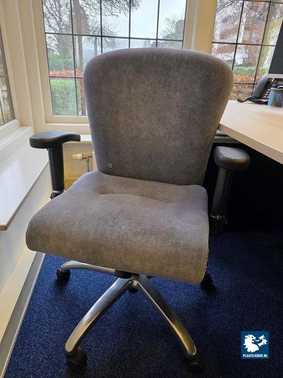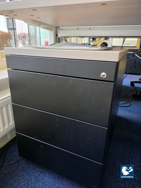 1 x Elektrisch in hoogte verstelbaar bureau ca. 180 x 90 cm met verrijdbare gasgeveerde bureaustoel met armleggers en verrijdbaar ladeblok