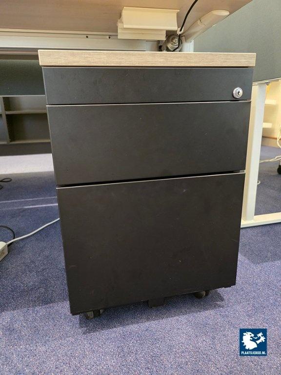 1 x Elektrisch in hoogte verstelbaar bureau ca. 180 x 90 cm met ladeblok en akoestische tussenschot