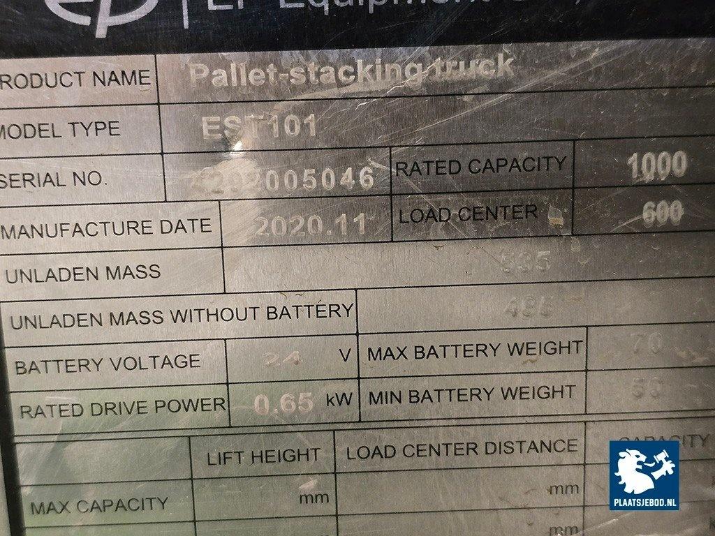 1 x EP Equipment elektrische palletheffer, type EST101, cap. 1000 kg, bouwjaar 2020