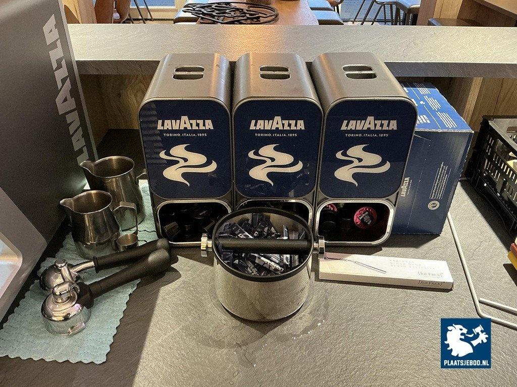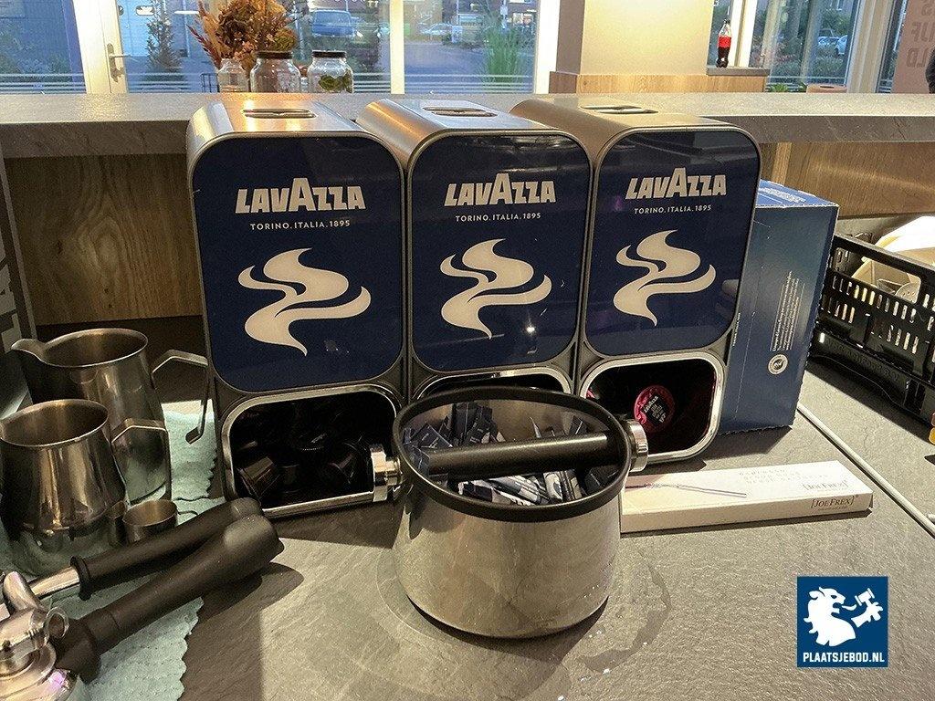 1 x Lavazza Wega LB4723 1-groeps capsule espressomachine; bouwjaar 2023; Afmetingen 76,5x58,5x47,5 cm. Gewicht 47 kg; Voorzien van koppenwarmer, stoom-en heetwater functie en dubbele schaalmeter voor drukcontrole boiler en pomp. Inclusief: 3 pistons, 2 melkkannetjes, afklopbak, pistonborstel en diverse espresso capsules