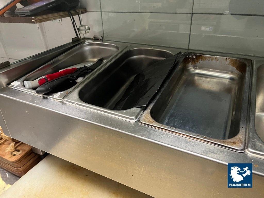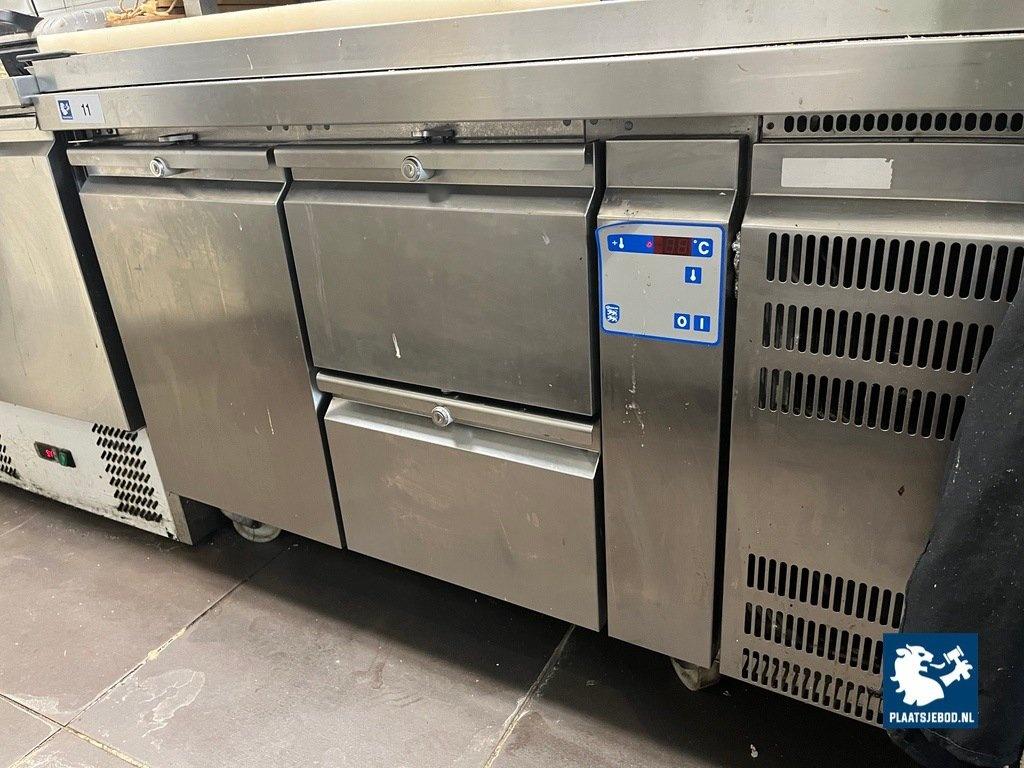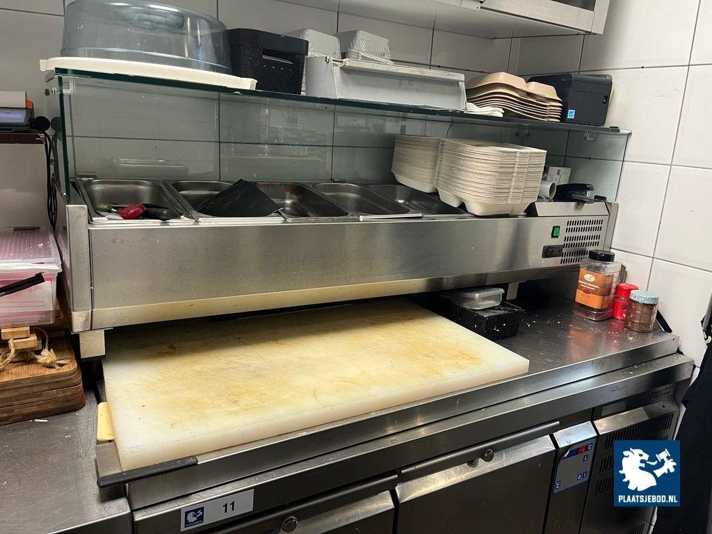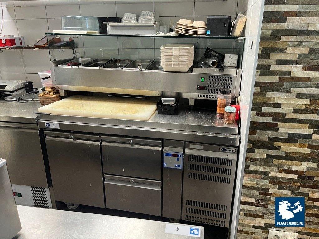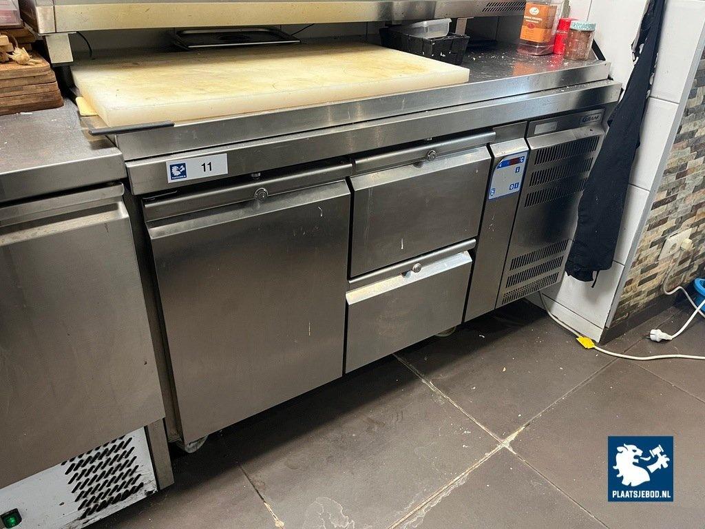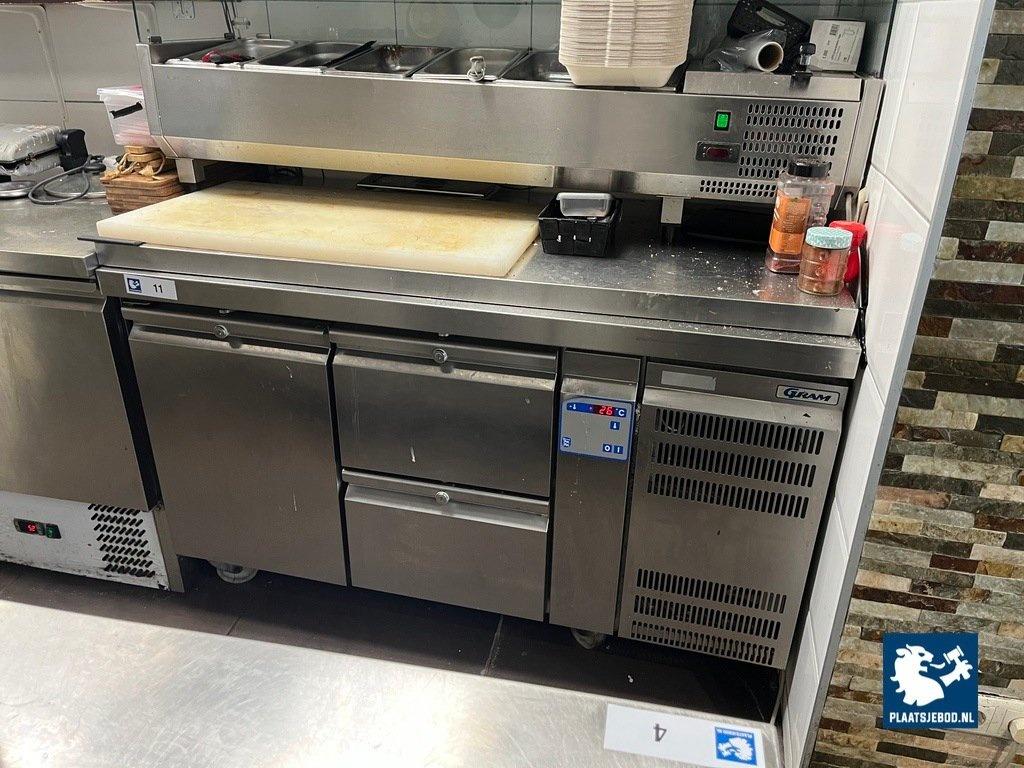 1 x G-Line koelmeubel, 1 deur en 2 lades, horecasaladière met glazen opstand en gastronormbakken, ca. 140 cm breed, 1 x snijplank en inhoud kasten