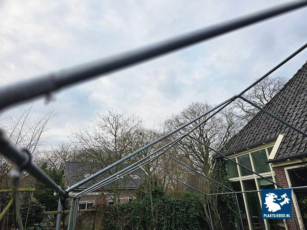 1 x Gegalvaniseerd stalen frame tbv partytent, 5 secties à 480 x 200 cm. Met tentdoek