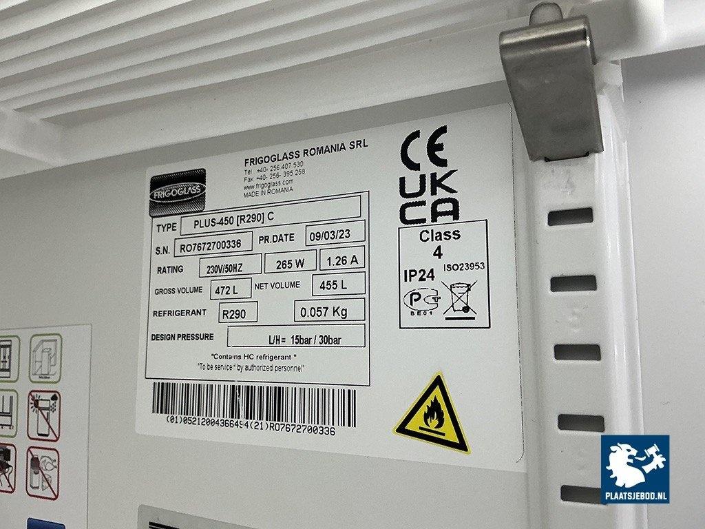 1 x Glasdeurkoelkast Frigoglass +-450 Bouwjaar 2023 nett volume 455 liter afm. 640x590x2000mm