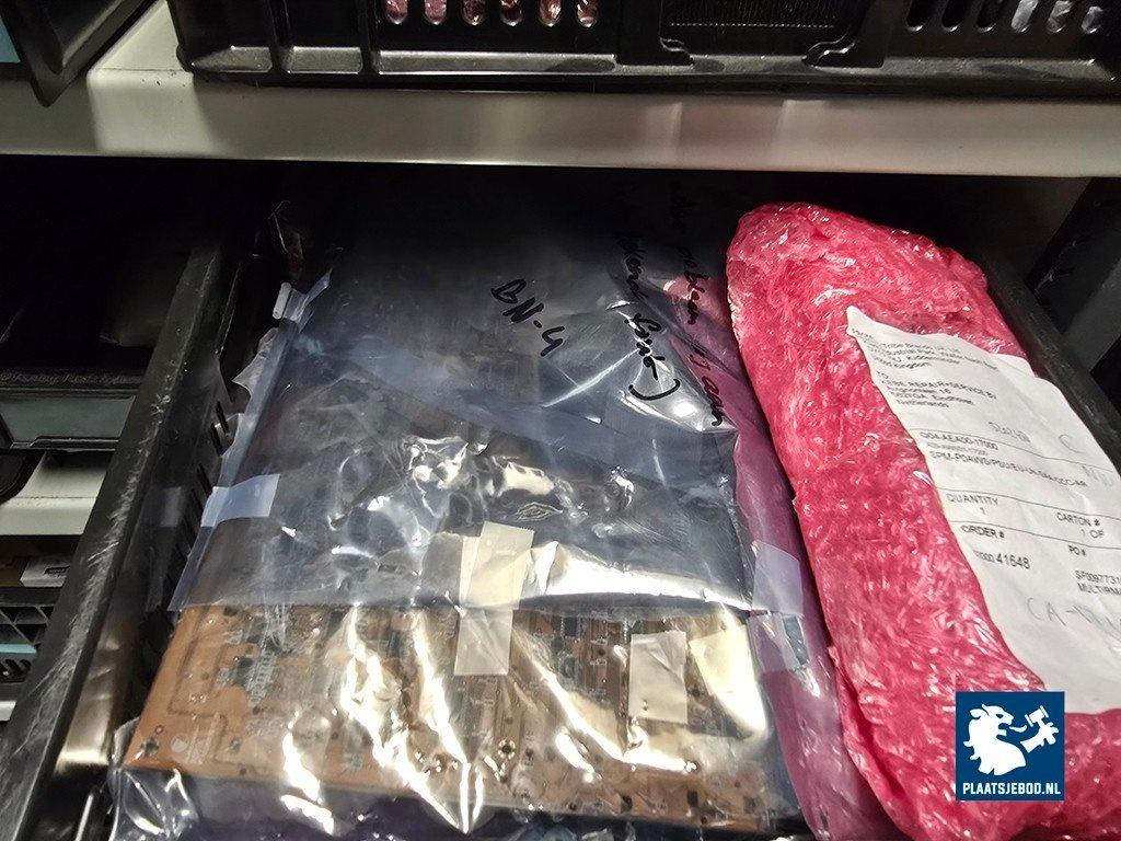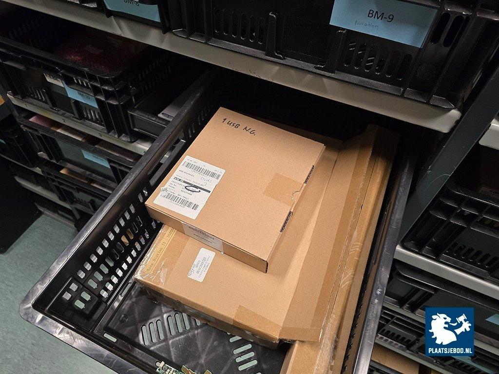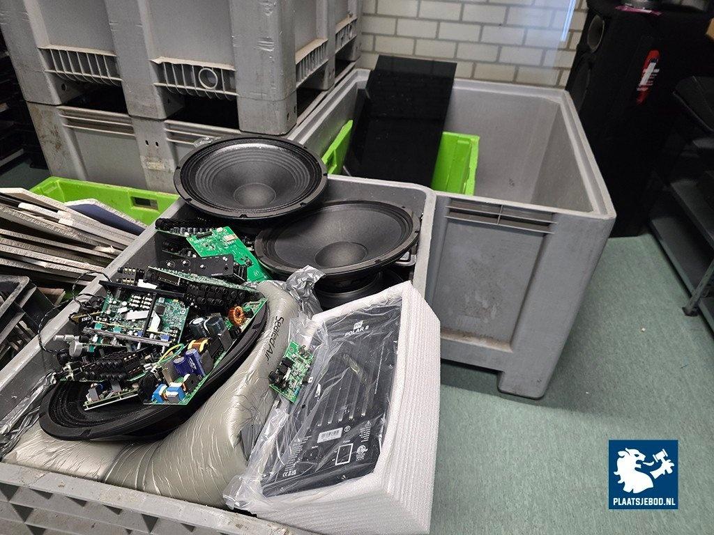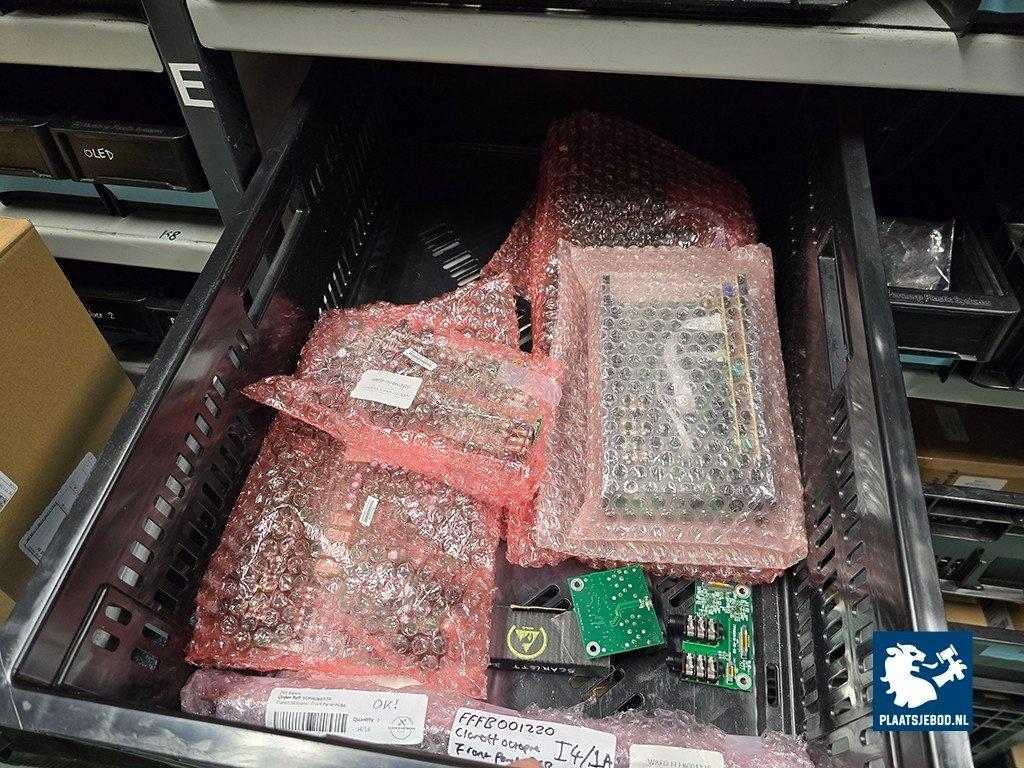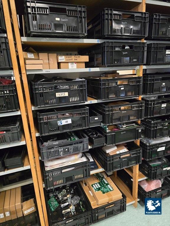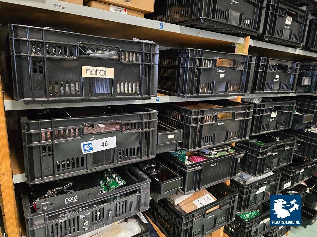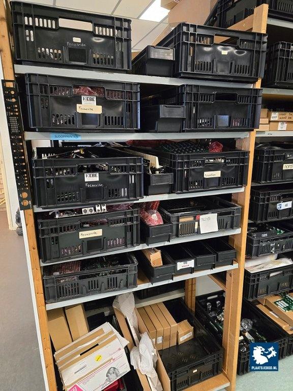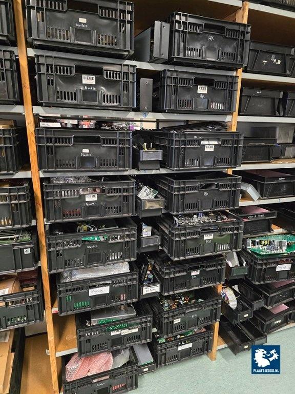 Kavel 323-046: 1 x Grote partij bakken met diverse spareparts, printplaten, etc.