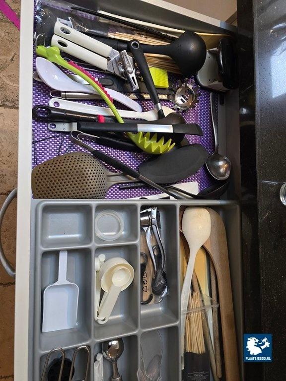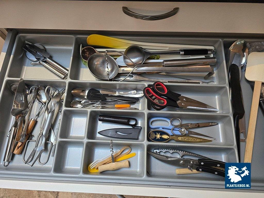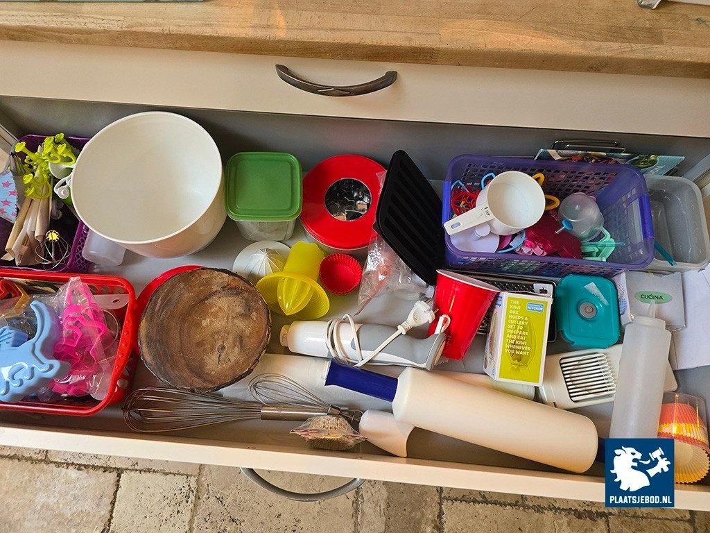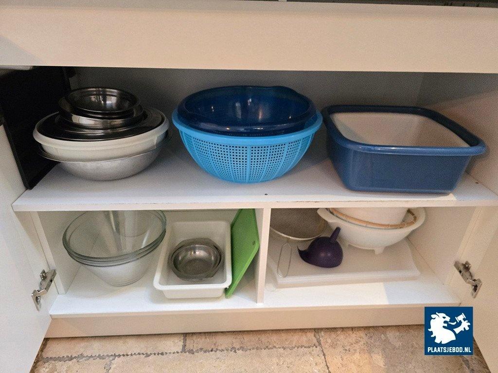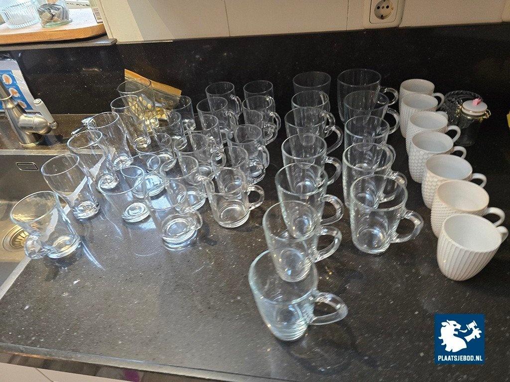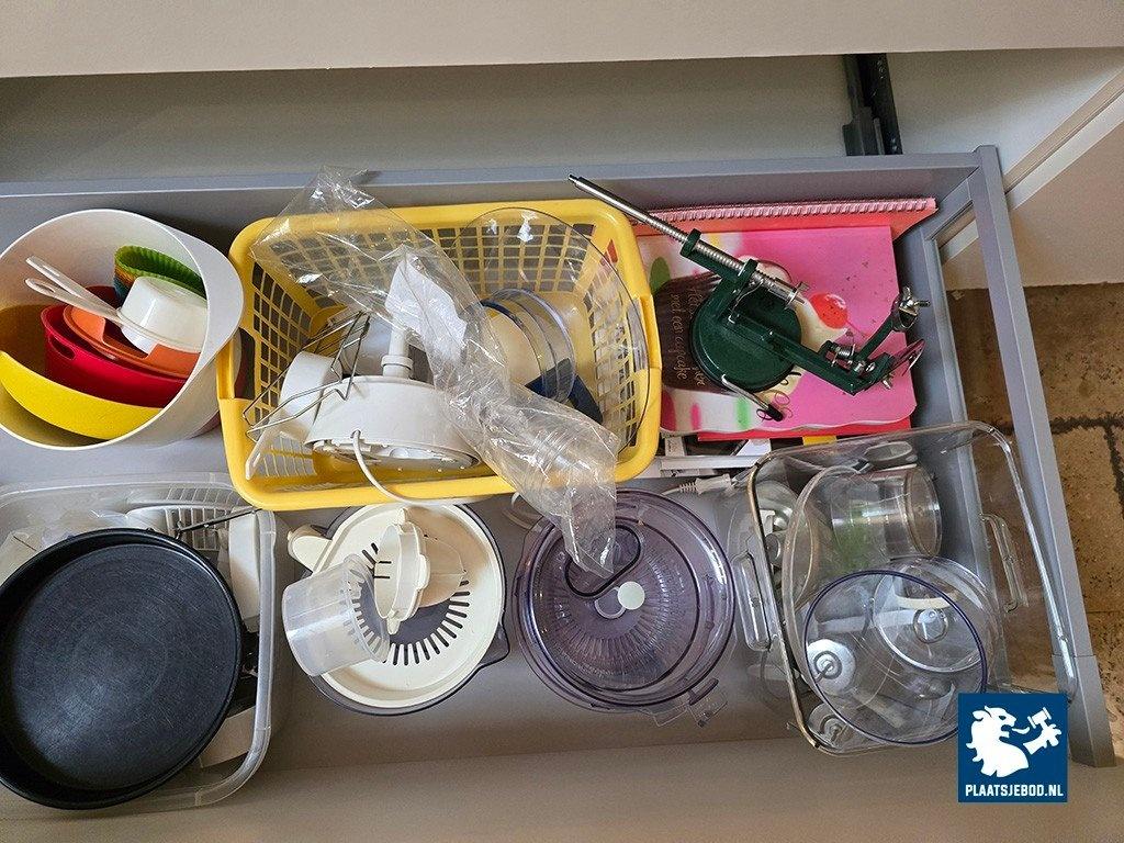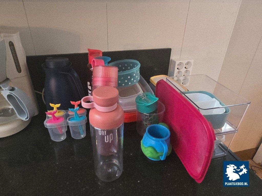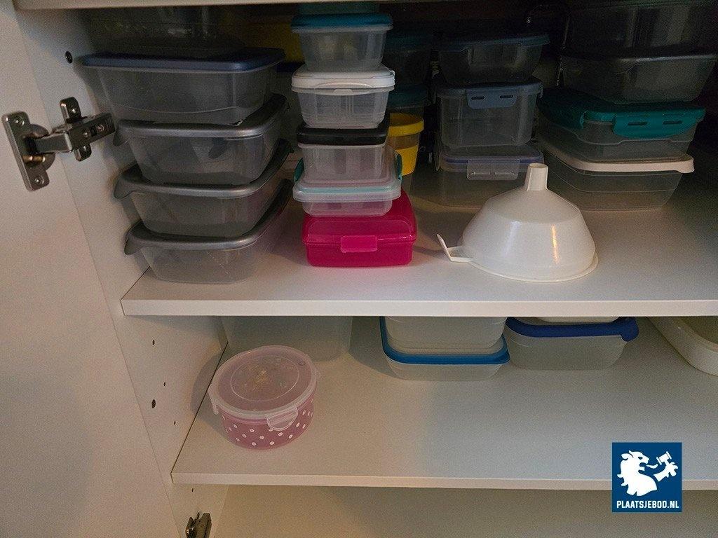 1 x Grote partij kantinegerief in keuken waaronder glaswerk, bewaarbakken, bestek, etc.