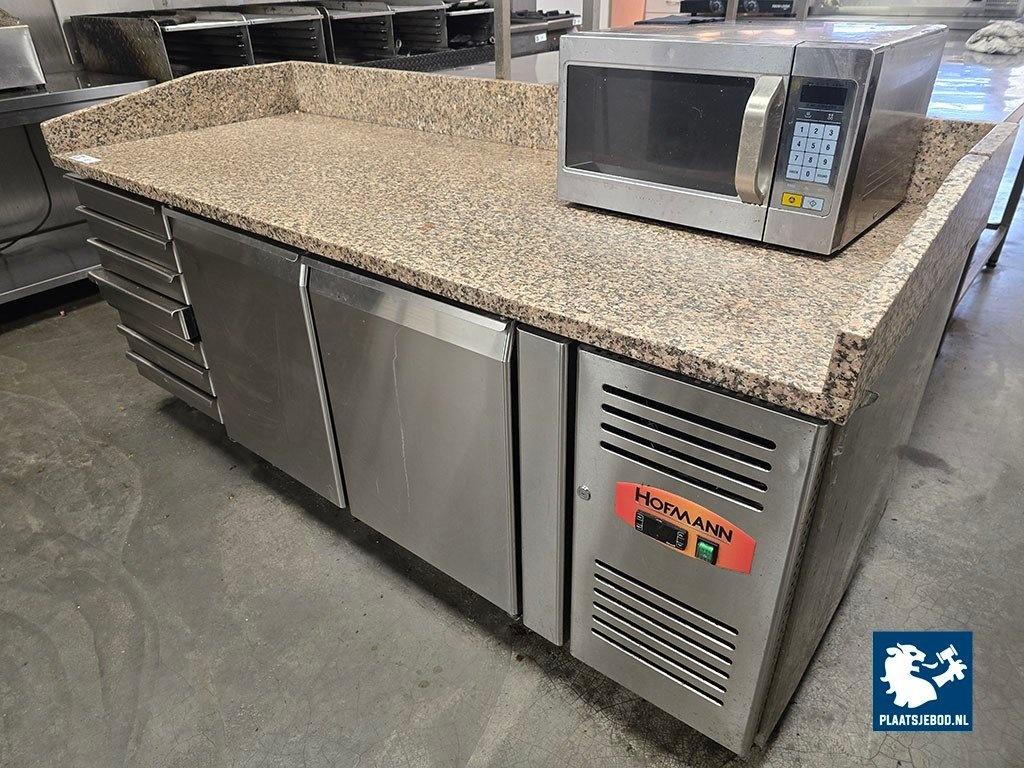 1 x Hofmann RVS koelwerkbank met 7 x lade en 2 x deur met granieten blad ca. 202 x 80 cm