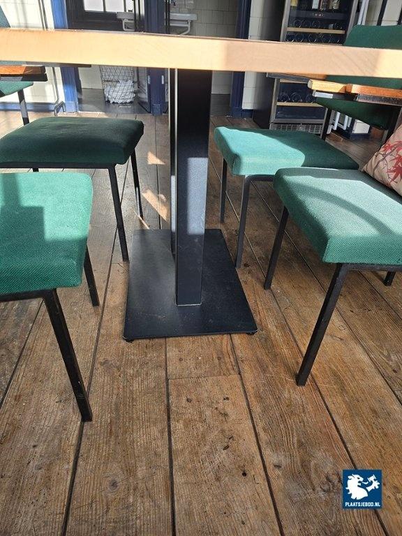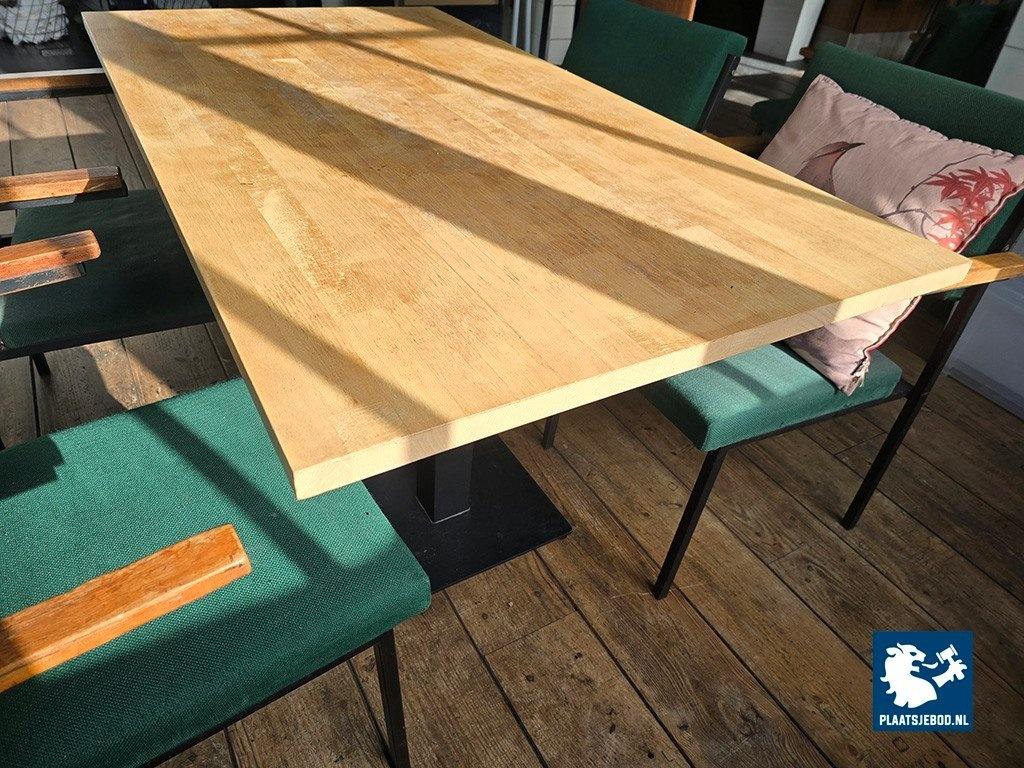1 x Houten tafel ca. 140 x 75 cm met dubbele stalen kolomvoet