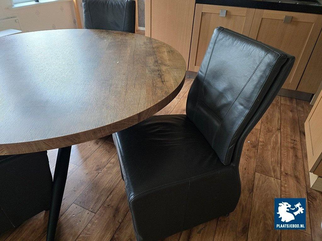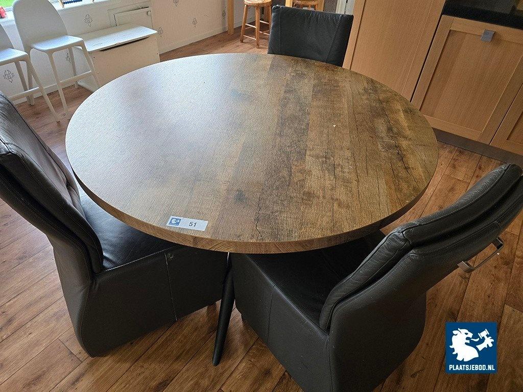 1 x Houten tafel met zwart stalen kruisvoet ca. 140 cm en 3 x stoel