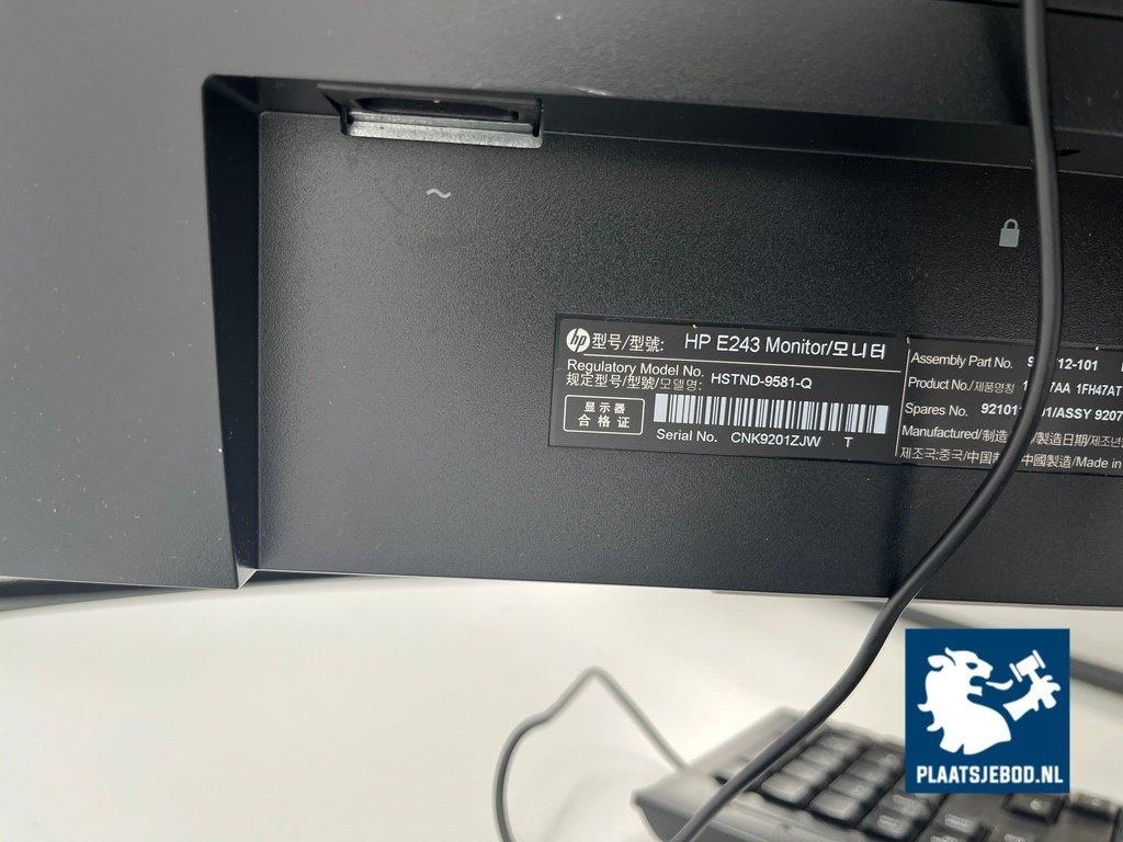 1 x HP 24 inch monitor, type E24, kantelbaar, met HP-toetsenbord, netsnoer.