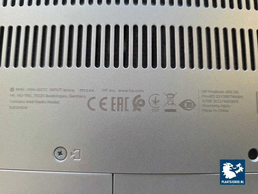 1 x HP Probook 450 G5 laptop, Intel Core i5-8250U, 8GB intern, 128GB opslag met lader en laptoptas
