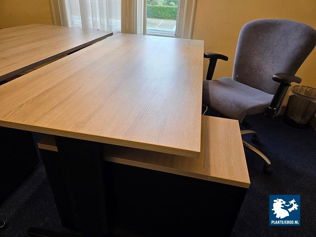 1 x In hoogte verstelbaar bureau ca. 160 x 80 cm met verrijdbare gasgeveerde bureaustoel met armleggers
