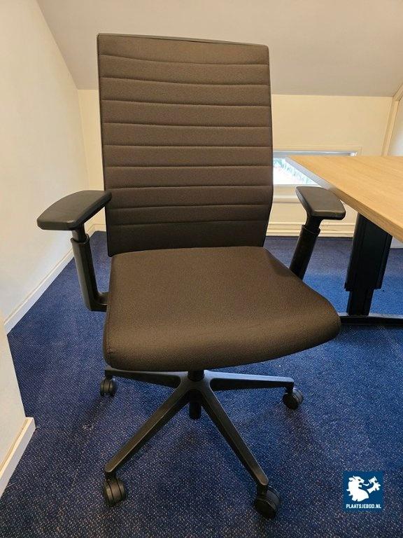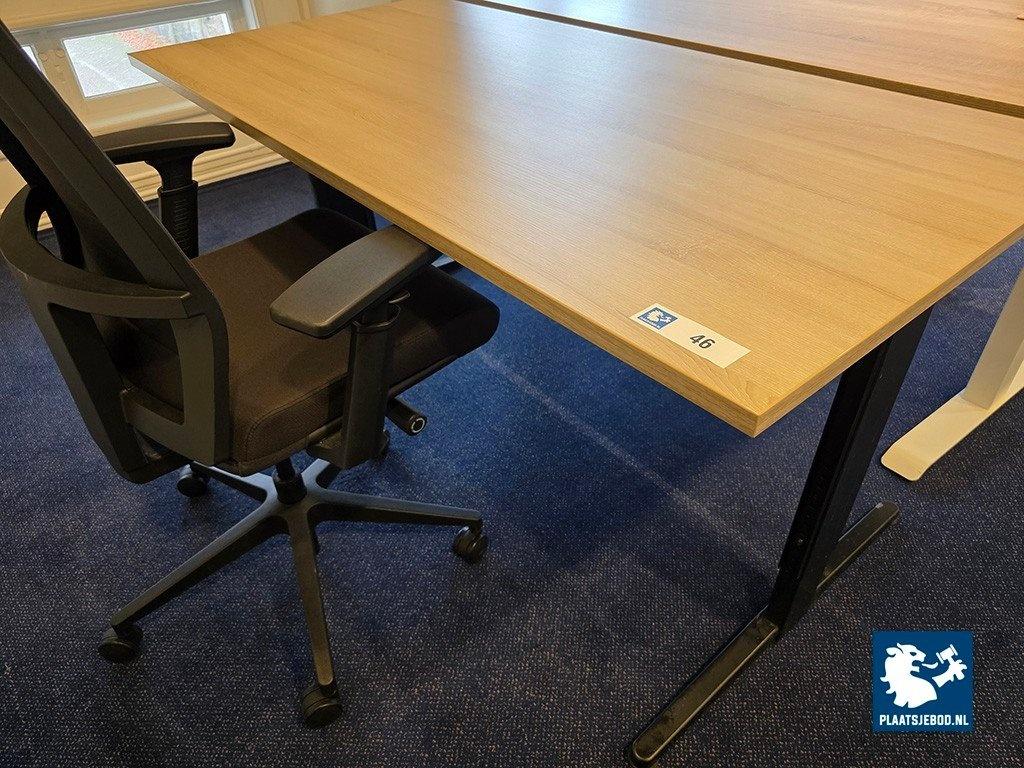 1 x In hoogte verstelbaar bureau ca. 160 x 80 cm met verrijdbare gasgeveerde bureaustoel met armleggers