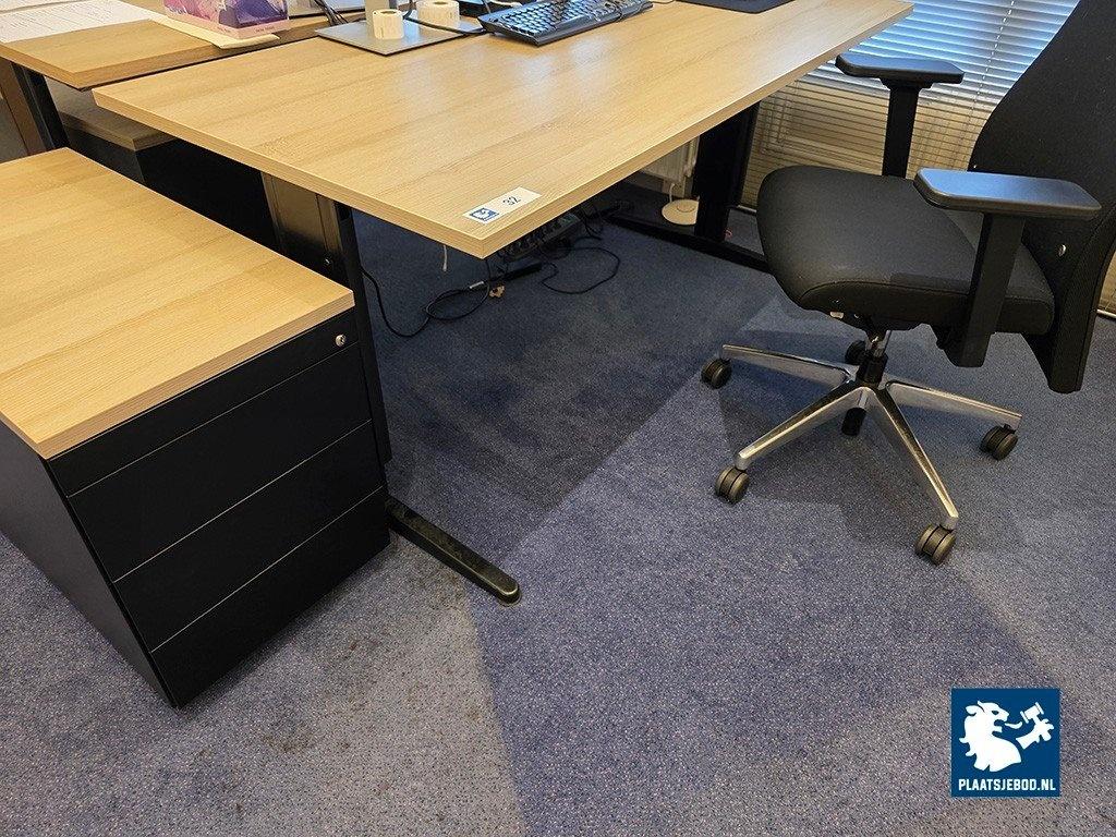 Kavel 300-032: 1 x In hoogte verstelbaar bureau met bureaustoel en 2 x ladeblok