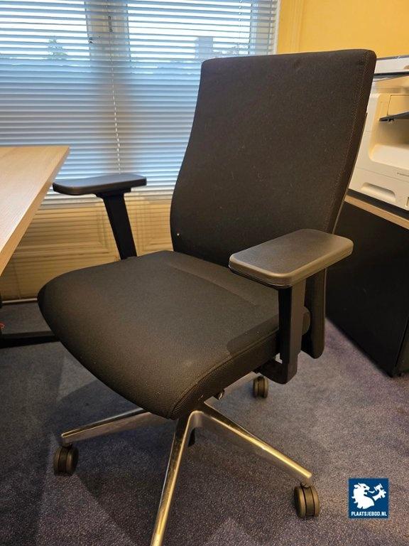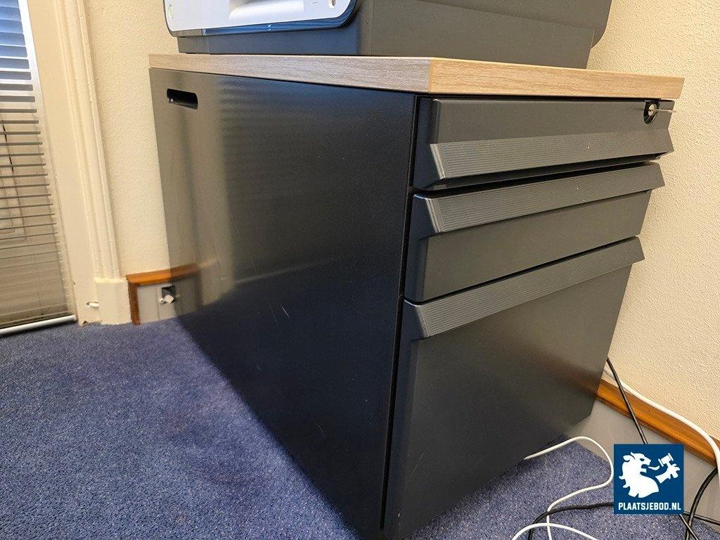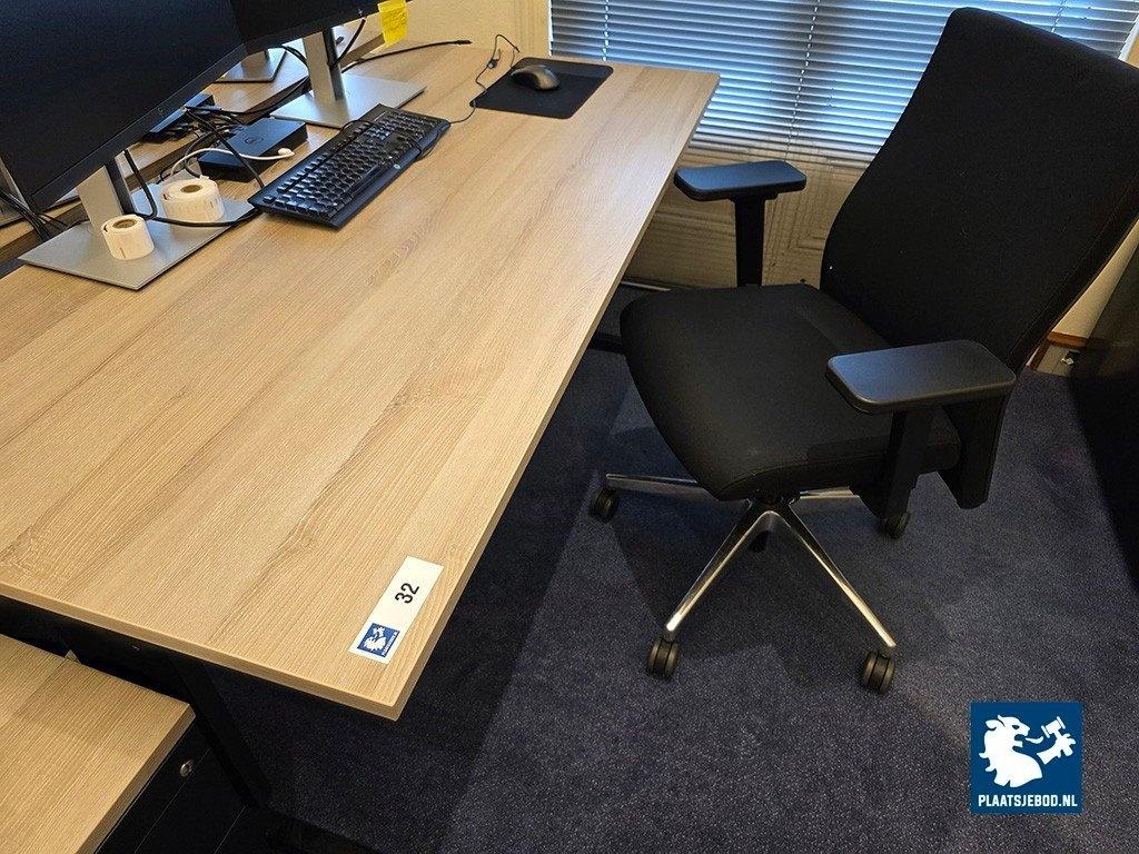 1 x In hoogte verstelbaar bureau ca. 160 x 80 cm met verrijdbare gasgeveerde bureaustoel met armleggers en 2 x verrijdbaar ladeblok