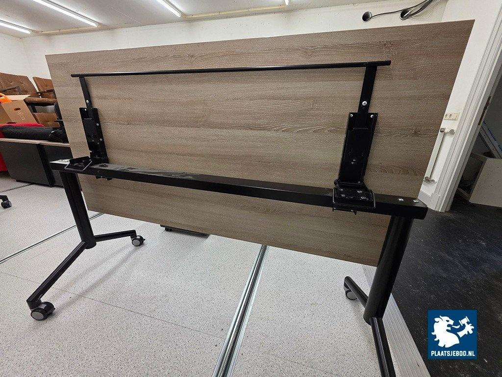 1 x Inklapbare en verrijdbare vergadertafel/ bureau ca. 160 x 80 cm met verrijdbare gasgeveerde bureaustoel met armleggers en bureaulade blok