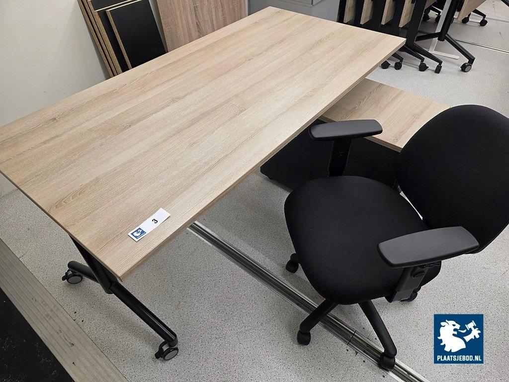 Kavel 300-003: 1 x Inklapbare en verrijdbare vergadertafel/ bureau met bureaustoel en bureaulade blok