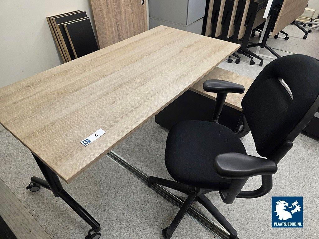Kavel 300-005: 1 x Inklapbare en verrijdbare vergadertafel/ bureau met bureaustoel en bureaulade blok