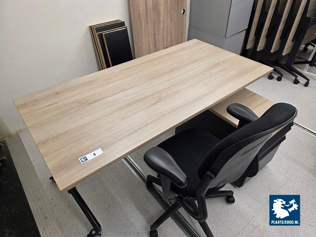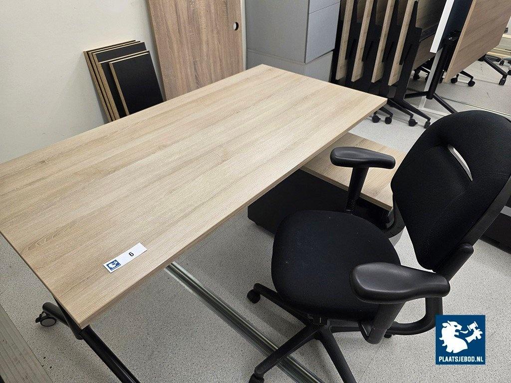 1 x Inklapbare en verrijdbare vergadertafel/ bureau ca. 160 x 80 cm met verrijdbare gasgeveerde bureaustoel met armleggers en bureaulade blok
