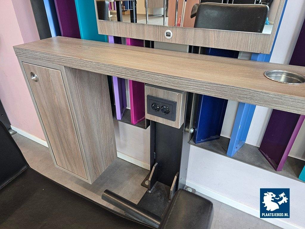 1 x Kapspiegelopstelling voorzien van stroomaansluitingen, USB en Sibel hydraulische hoogte verstelbare stoel afm. 235 x 260 cm.