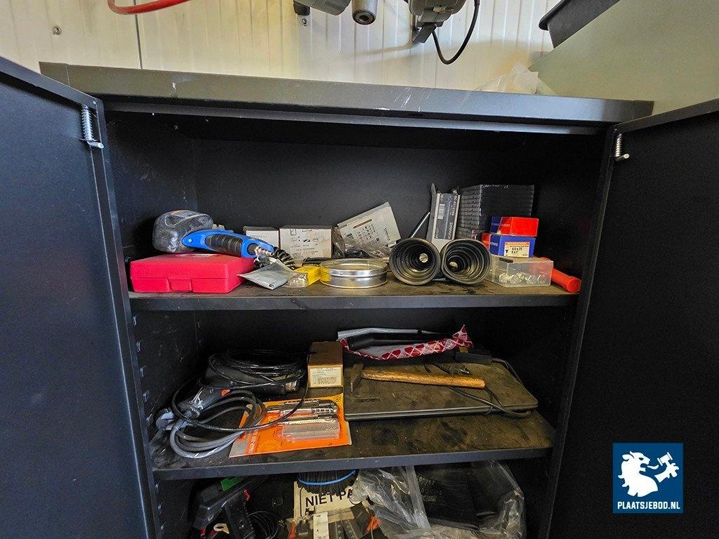 1 x Kavel met diverse autolampjes, ROMAX uitlaatklemmen, centreerringen, 3 x diverse metalen kast met inhoud, wo div spuitbussen met smeermiddelen, spanbanden etc