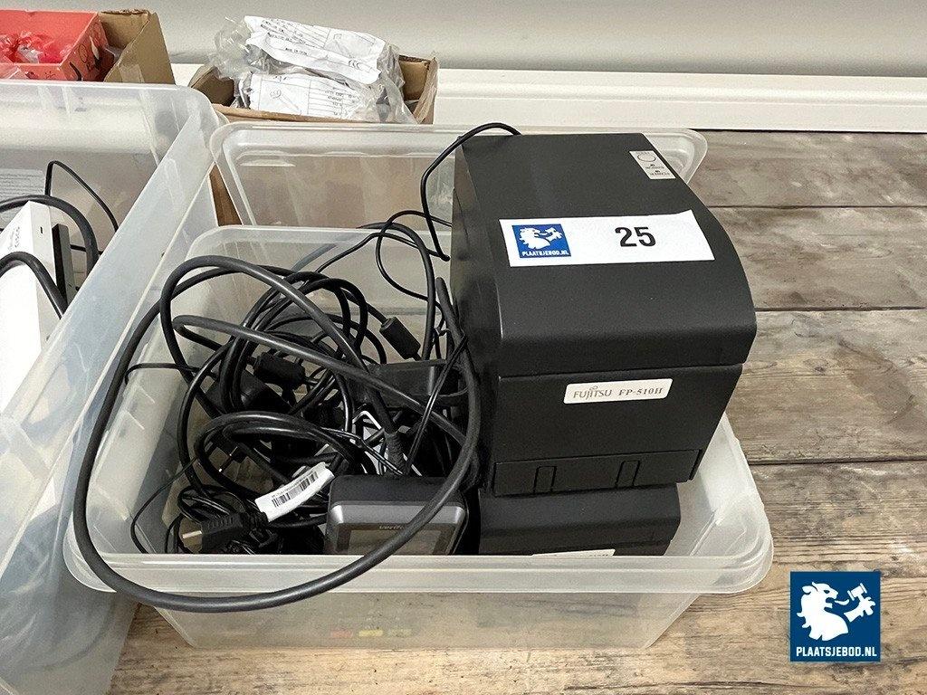 Kavel 298-025: 1 x Kavel met diverse, oa met twee Fujitsu bonnenprinters, 2 x Verifone pinmachine, 1 x doos met kabels, 1 x Cisco 800 series router, diverse kabels, 1 x Cisco switch, 1 x Mood Media speler met Asus DVD-speler, werking van items onbekend