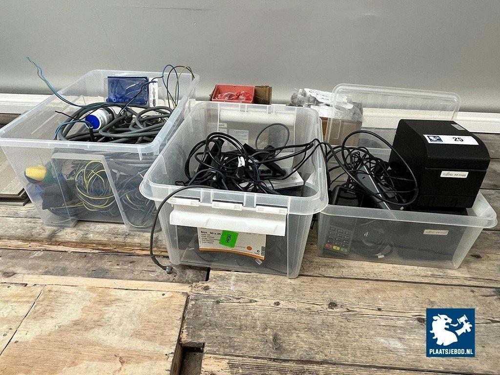 1 x Kavel met diverse, oa met twee Fujitsu bonnenprinters, 2 x Verifone pinmachine, 1 x doos met draden, 1 x Cisco 800 series router, diverse kabels, 1 x Cisco switch, 1 x Mood Media speler met Asus DVD-speler, werking van items onbekend