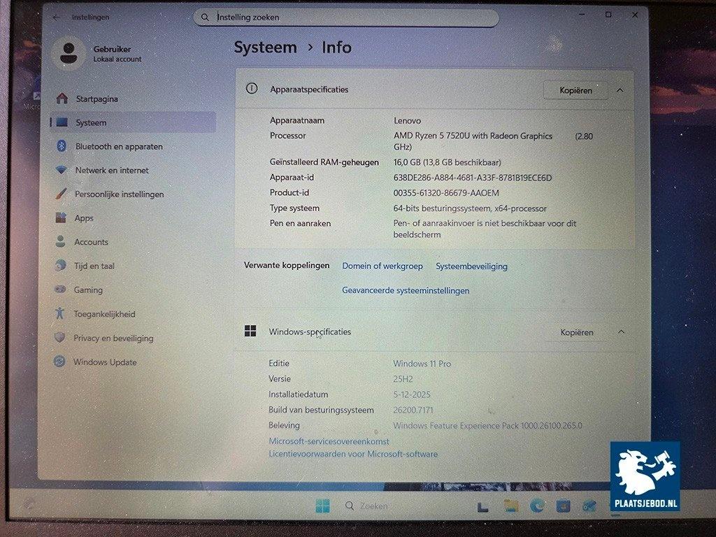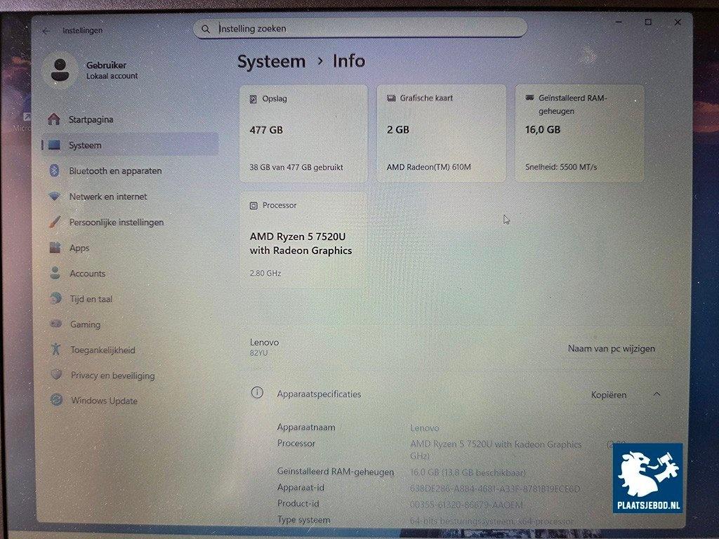 1 x Lenovo AMD Ryzen laptop, 16 GB intern, 512 GB opslag, nieuwe Windows 11 Pro installatie, oplader en laptopsleeve