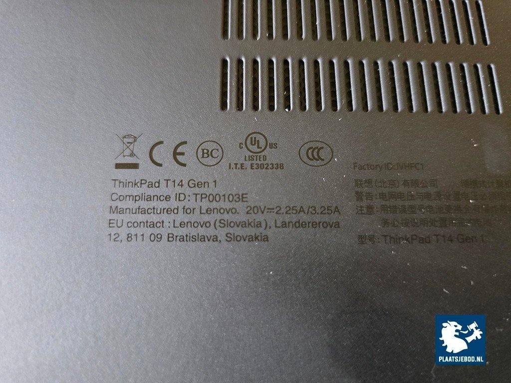 1 x Lenovo Thinkpad T14 Gen 1 laptop, Intel i5-10310U, 16GB intern, 256GB opslag