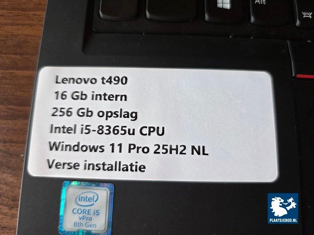 1 x Lenovo Thinkpad T490 laptop, Intel i5-8365U, 16GB intern, 256GB opslag