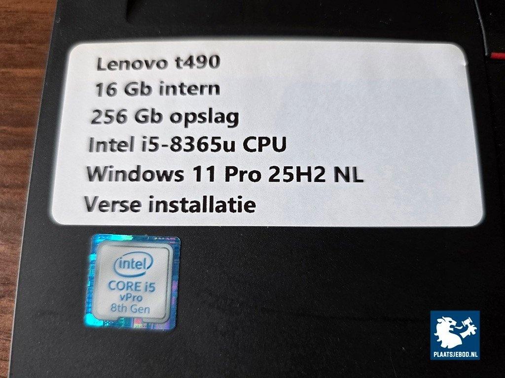 1 x Lenovo Thinkpad T490 laptop, Intel i5-8365U, 16GB intern, 256GB opslag