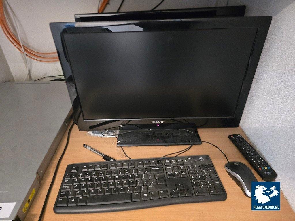 Kavel 323-062: 1 x Lenovo thinkserver, 2 x Sharp monitor, UPS, etc.