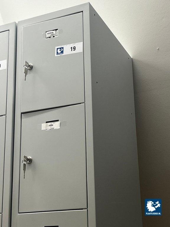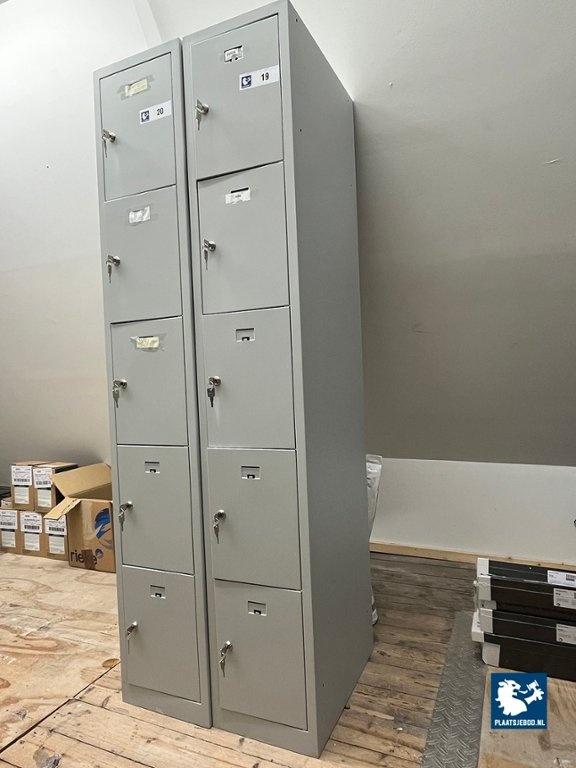 Kavel 298-019: 1 x Lockerkast met vijf kastjes, formaat 180 x 30 x 50 cm, kleur grijs, inclusief sleutels