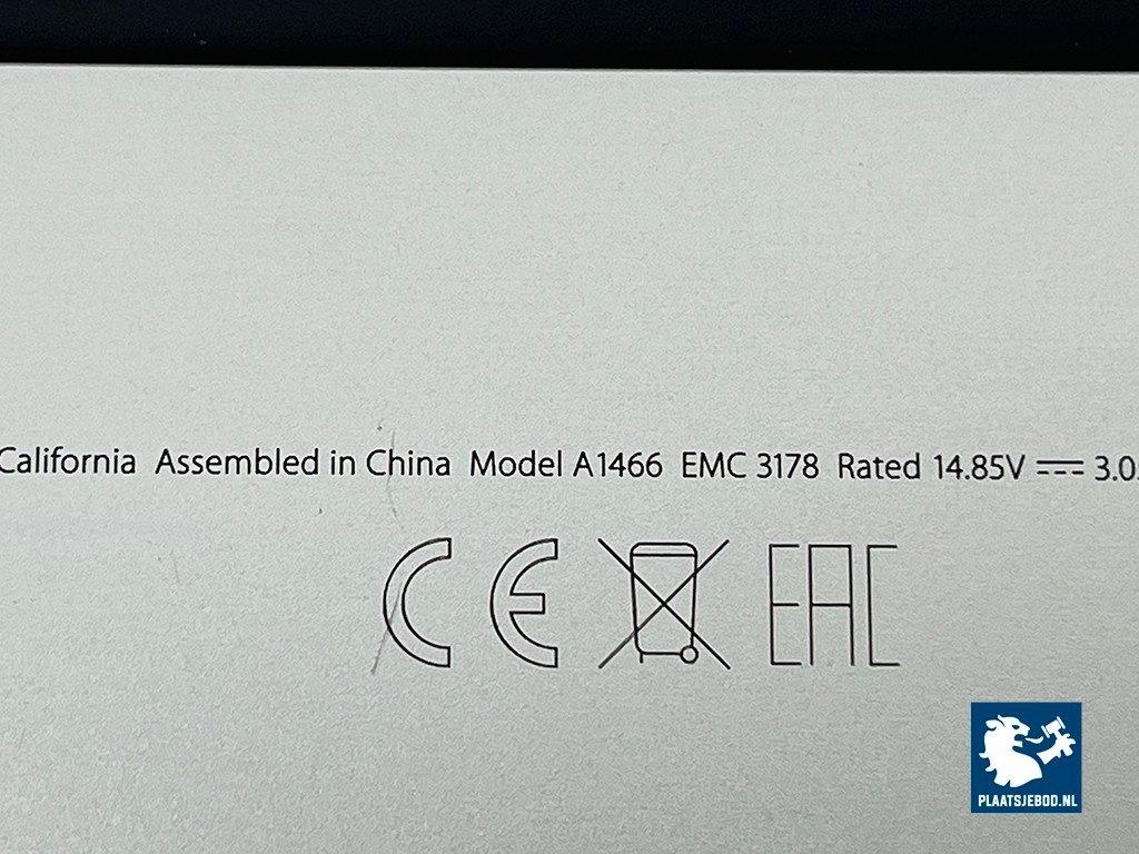 1 x MacBook Air model A1466, 1,8 GHz Dual-Core Intel Core i5, 8 GB, 128 GB opslag, Intel HD Graphics 6000 1536 MB, zonder oplader