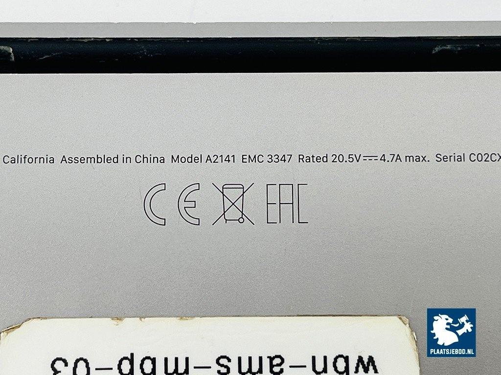1 x MacBook Pro 16 inch 2019 model A2141, 2,6 GHz 6-core Intel Core i7, 16 GB, 512 GB opslag, zonder oplader