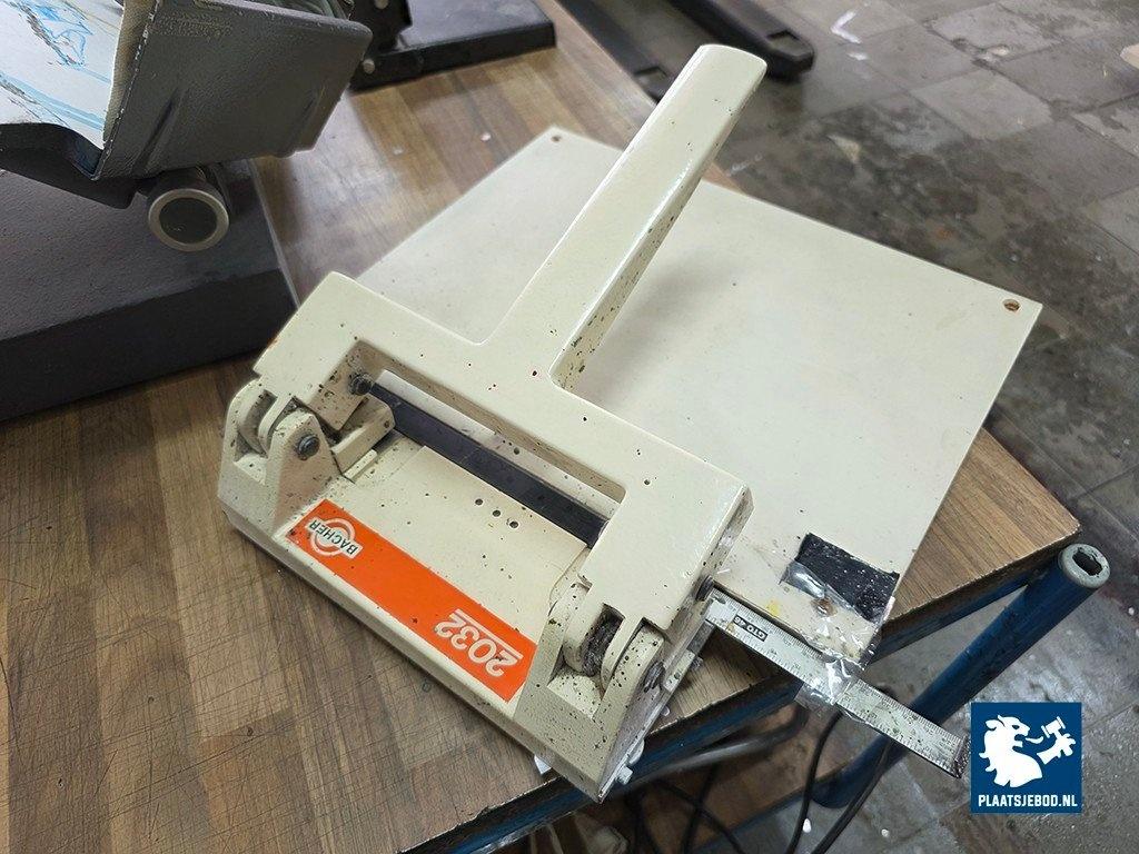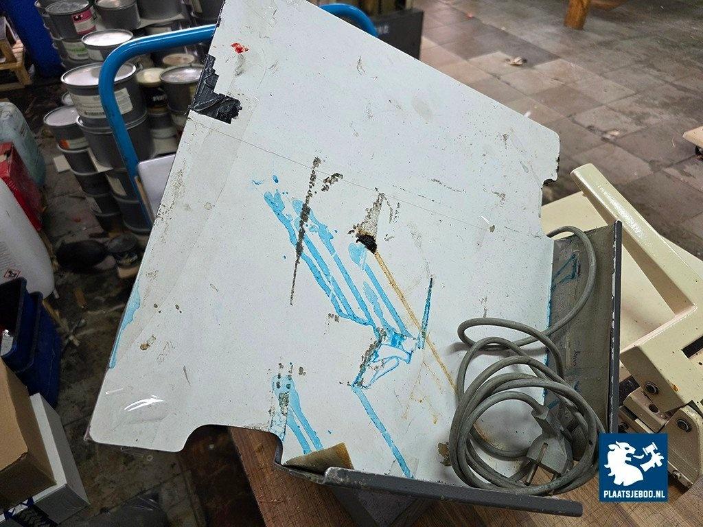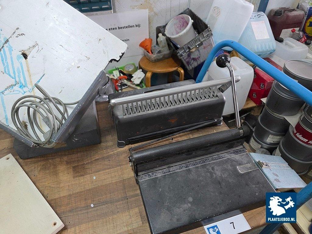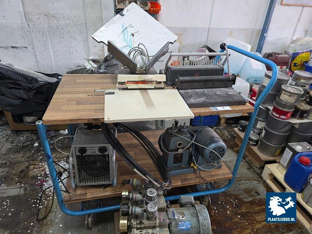 Kavel 325-007: 1 x Magazijnkar met diverse grafische afwerkingsmachines