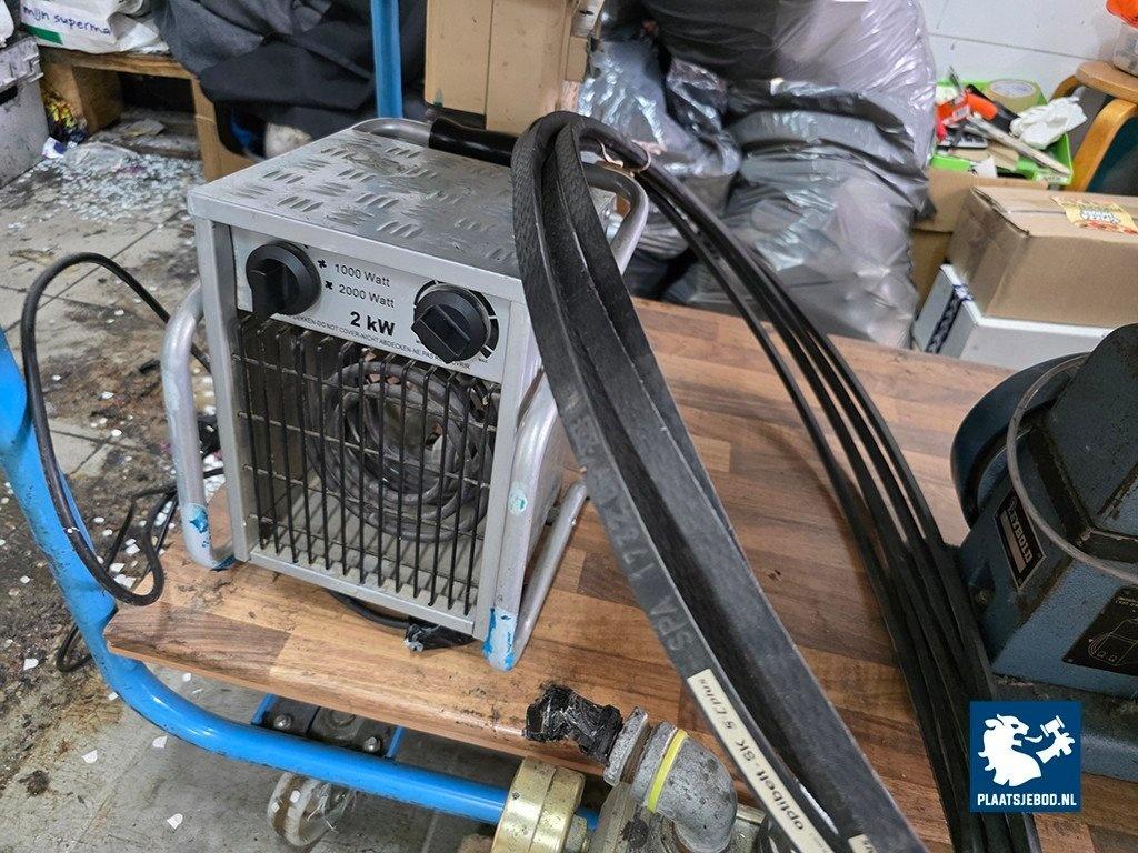 1 x Magazijnkar, formaat ca. 120x80 cm, inclusief diverse grafische afwerkingsmachines en hogedruk aggregraat, elektrische kachels