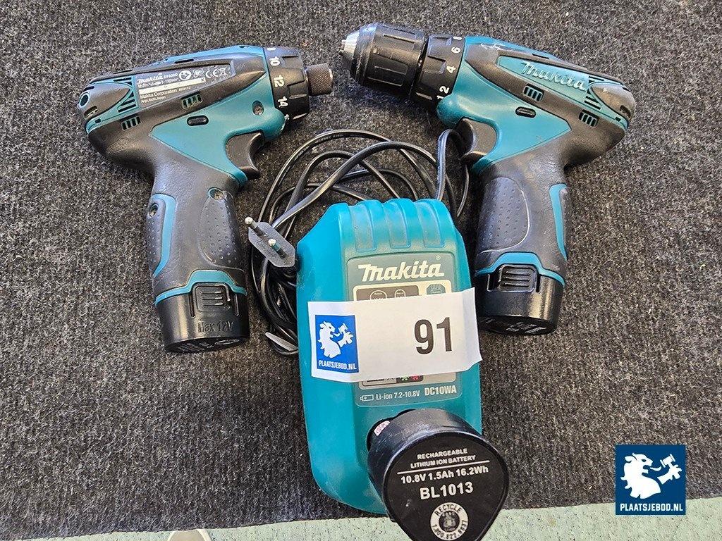 Kavel 323-091: 1 x Makita DF030D en 1 x DF330D accuboormachines met lader en accu