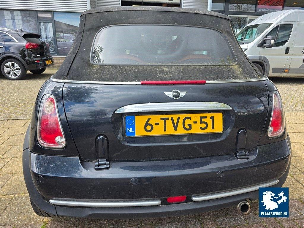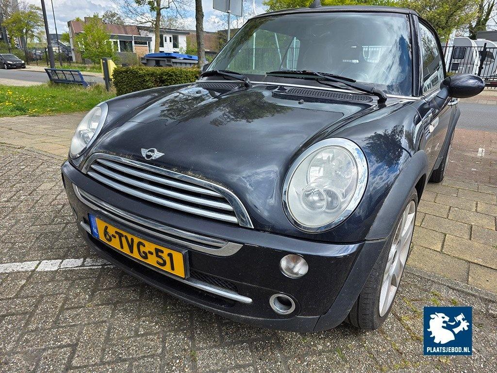 1 x Mini Cabrio personenwagen type 1.6 Cooper, kenteken 6-TVG-51, afgegeven op 03-04-2015, bouwjaar 2008, APK geldig t/m 21-11-2025, afgelezen kilometerstand 166,977 km. Linkerdeur gaat niet open.