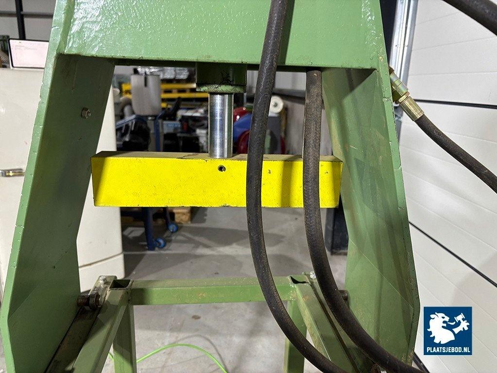1 x mobiele hydraulische pers met onderstel afmeting 45cm breed 60cm diep 160cm hoog afmeting pers 40x40cm