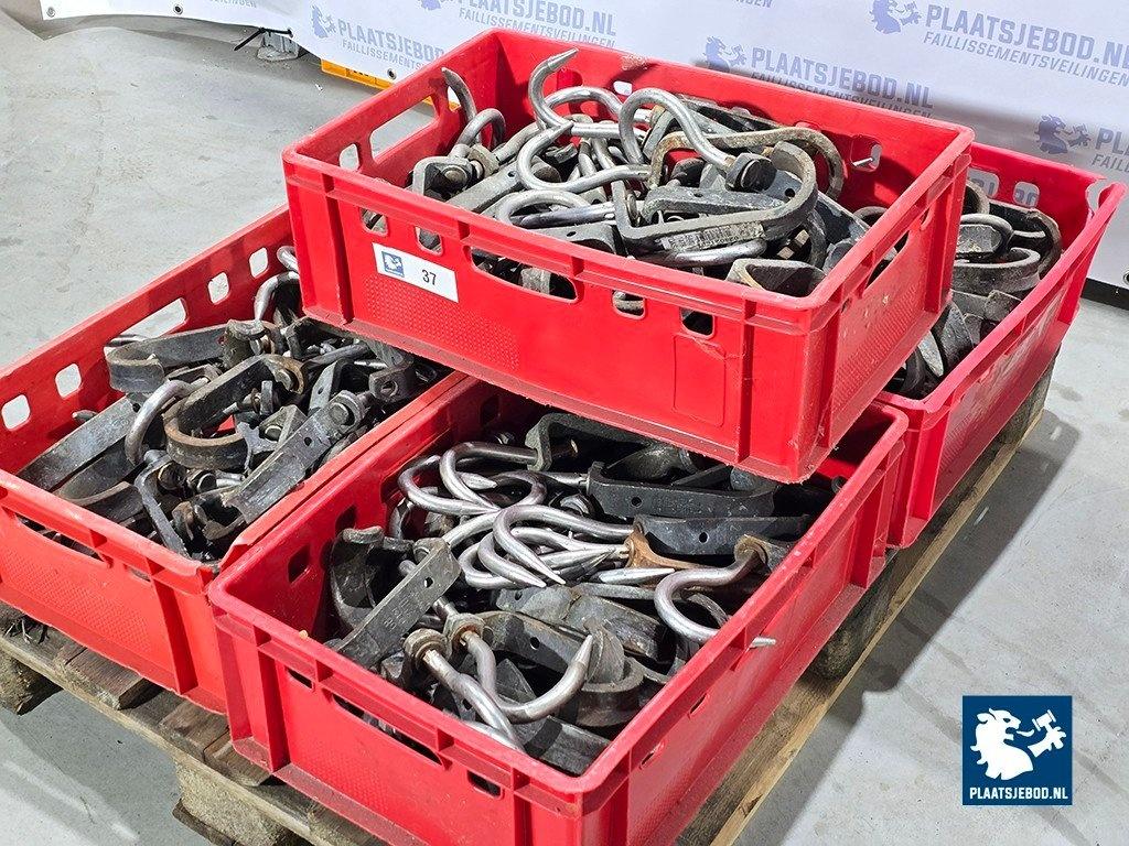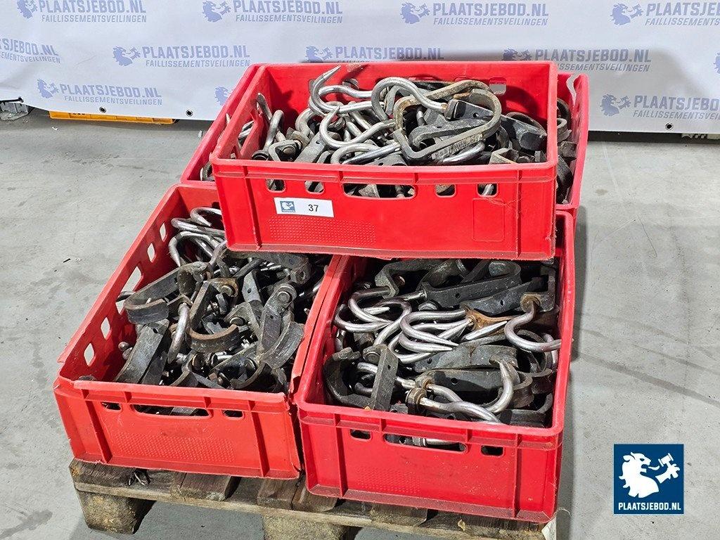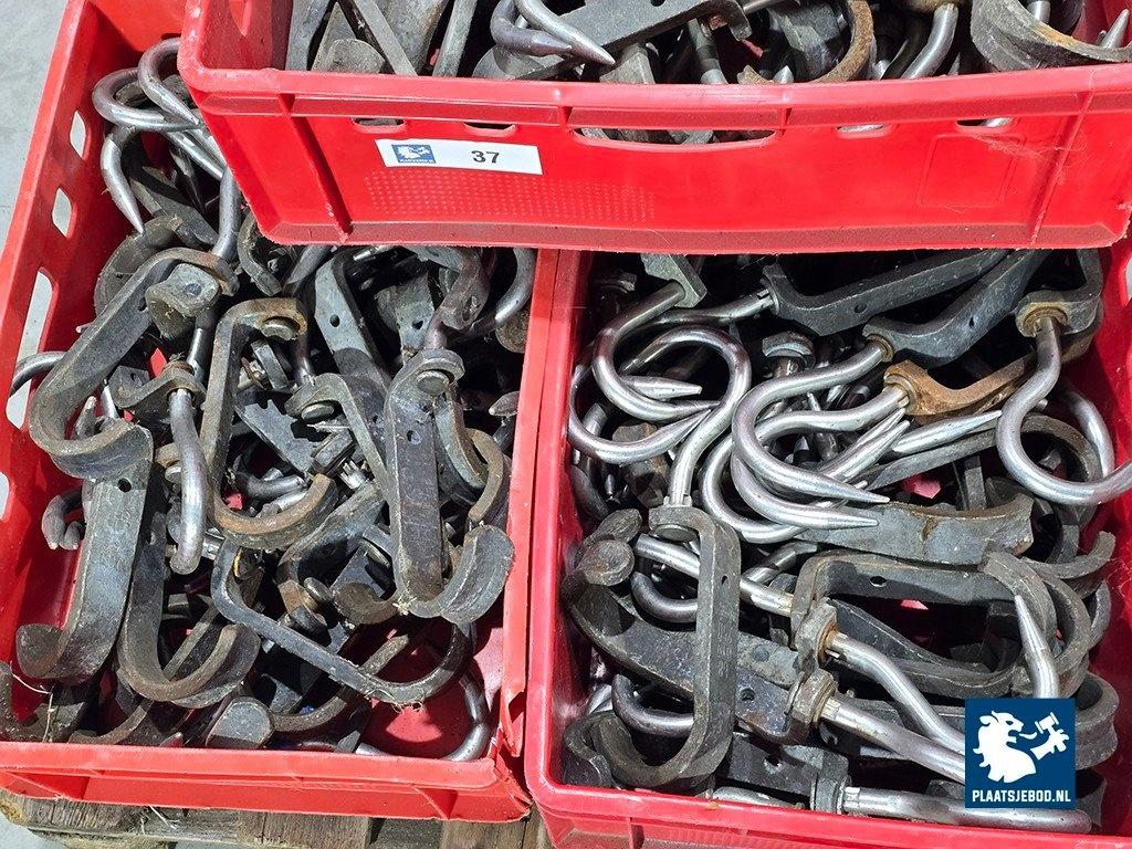 1 x Pallet met 5 bakken originele vleeshaken, ca 200 stuks