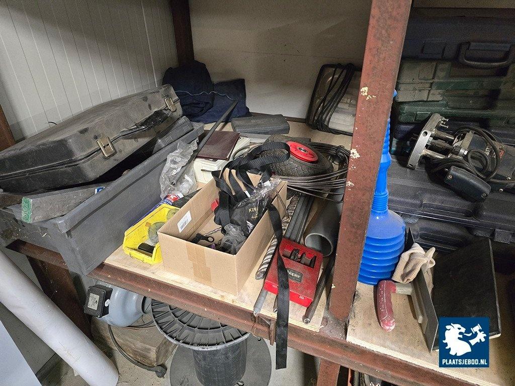 1 x Partij divers gereedschap in stelling. Complete inhoud, werking onbekend.