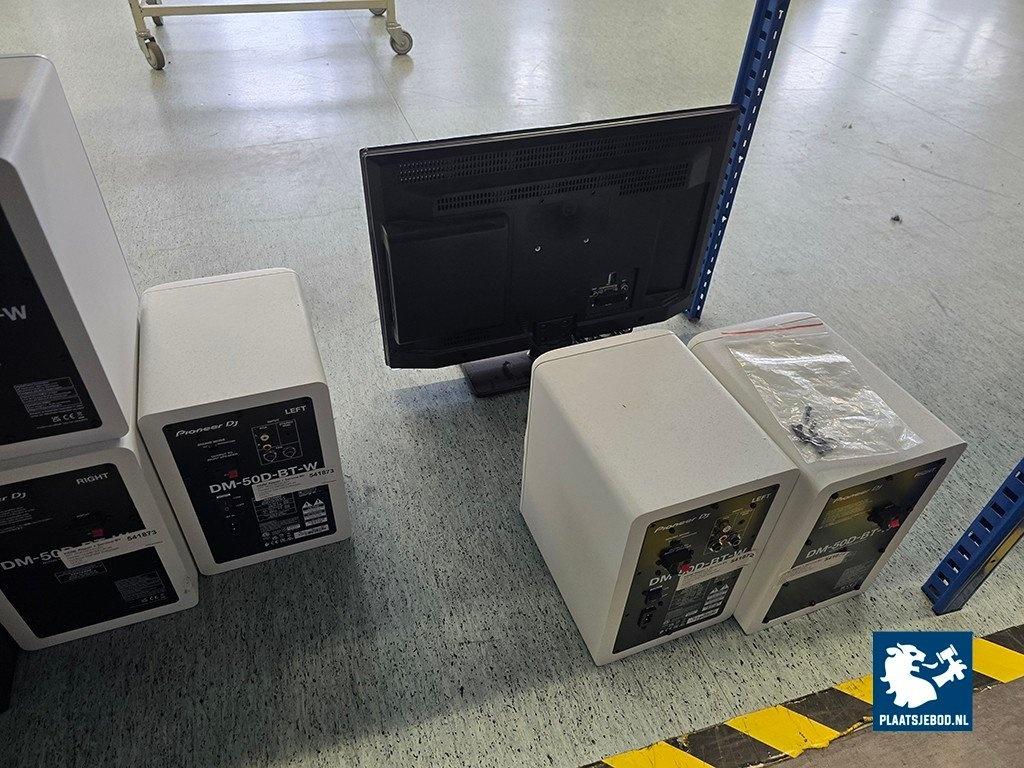 1 x Partij diverse audioapparatuur in stelling. N.B. Zonder stelling
