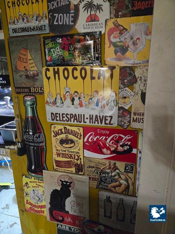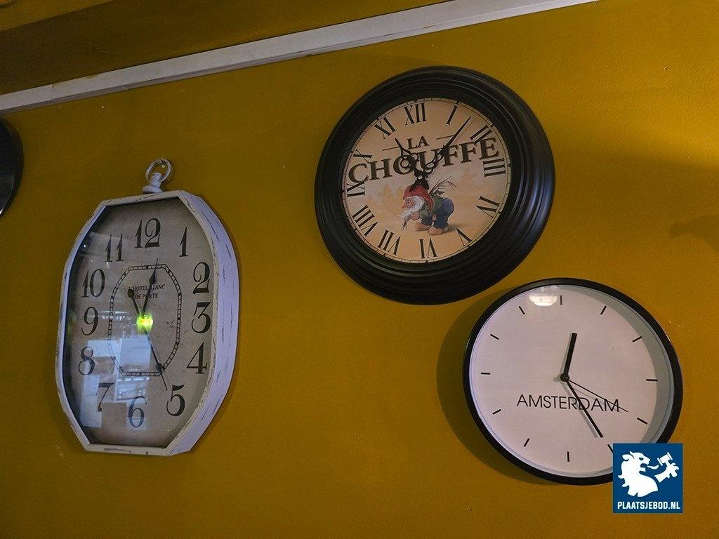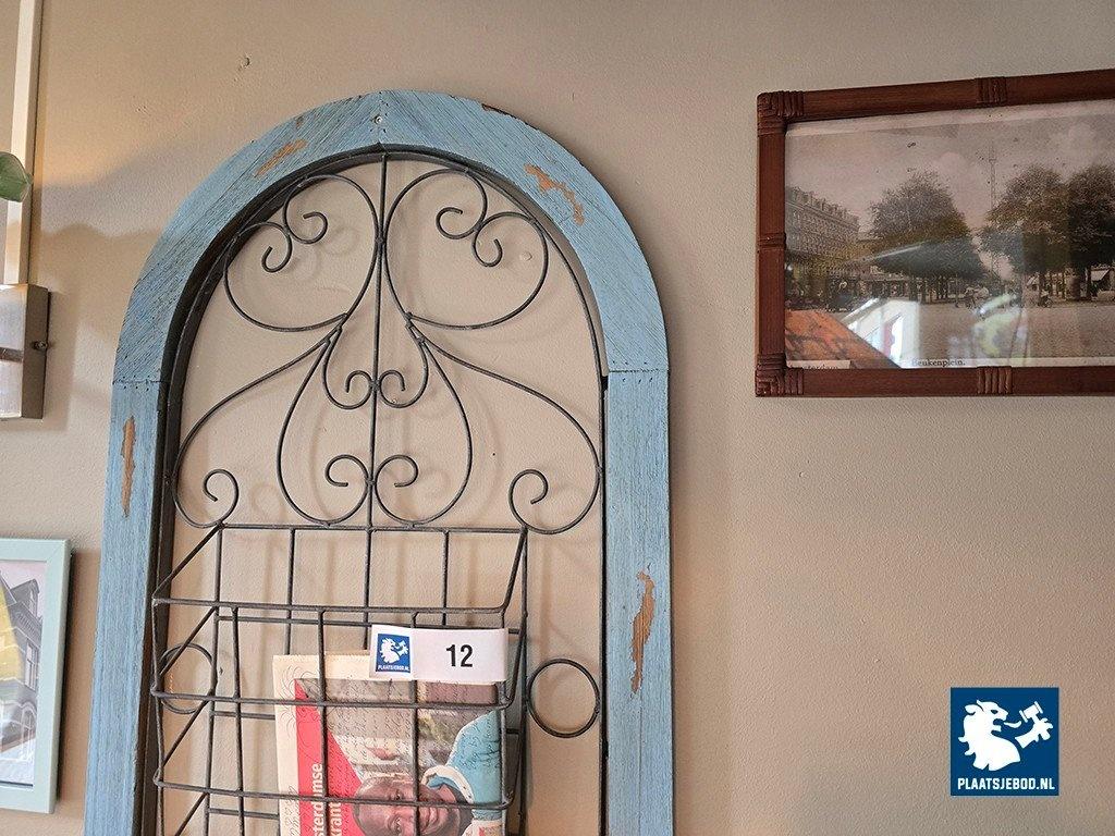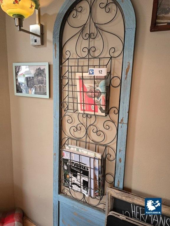 1 x Partij diverse decoratie waaronder lectuur wandrek, klokken, fotolijstjes, reclameborden, etc.