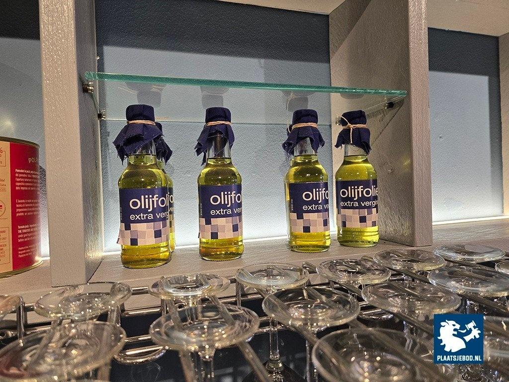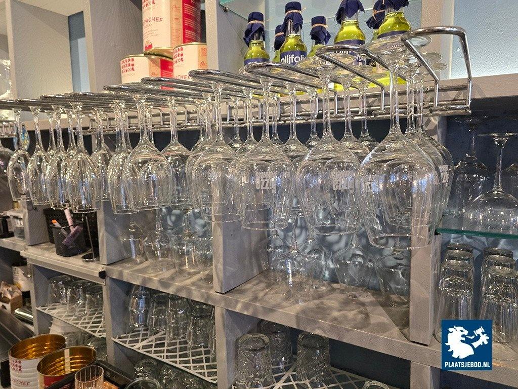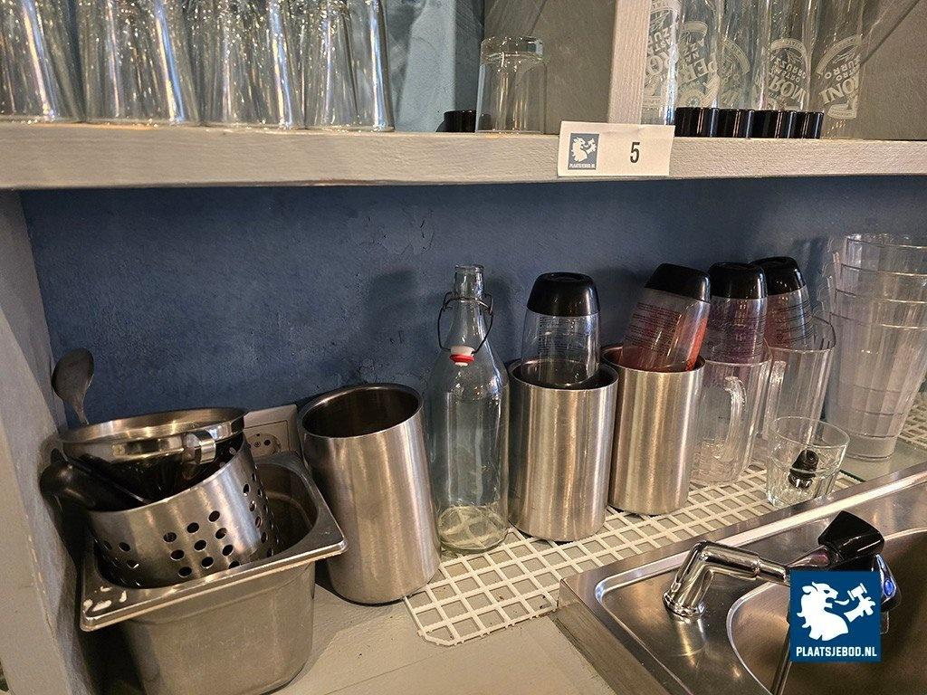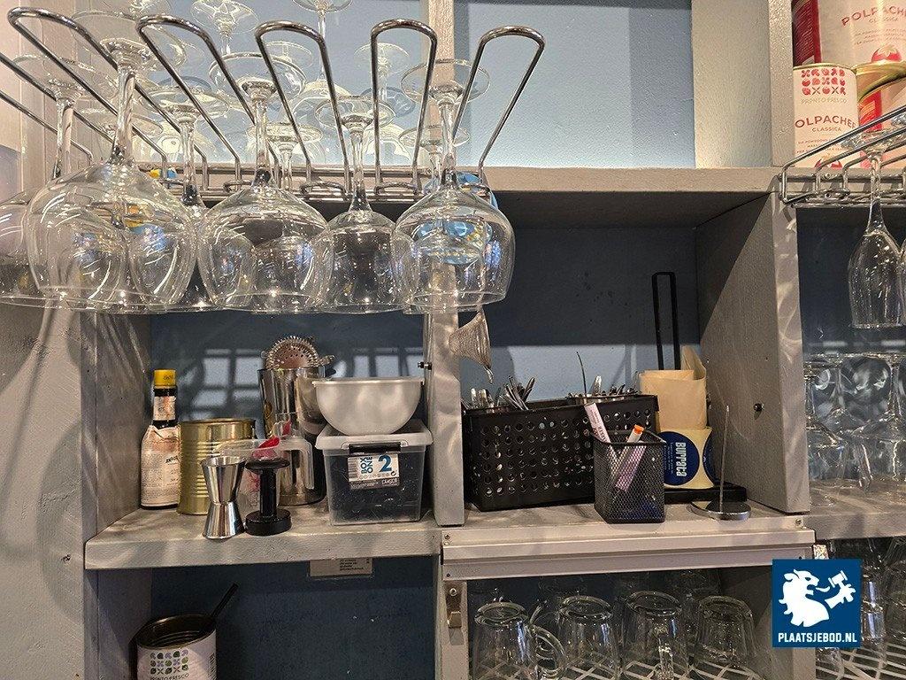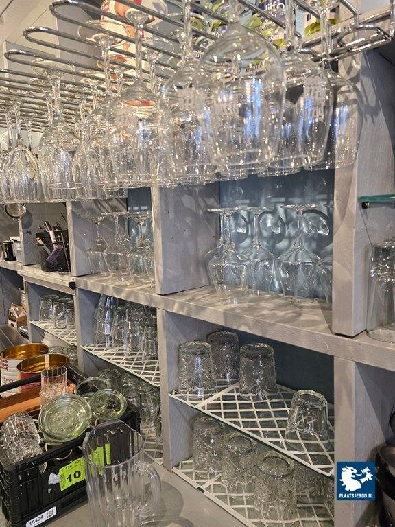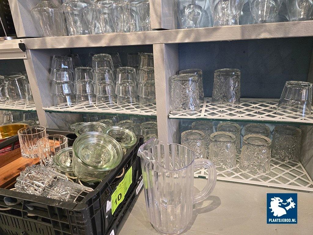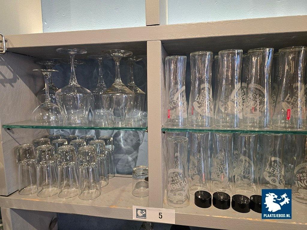 1 x partij diverse glaswerk en bartoebehoren in de open vakkenkast