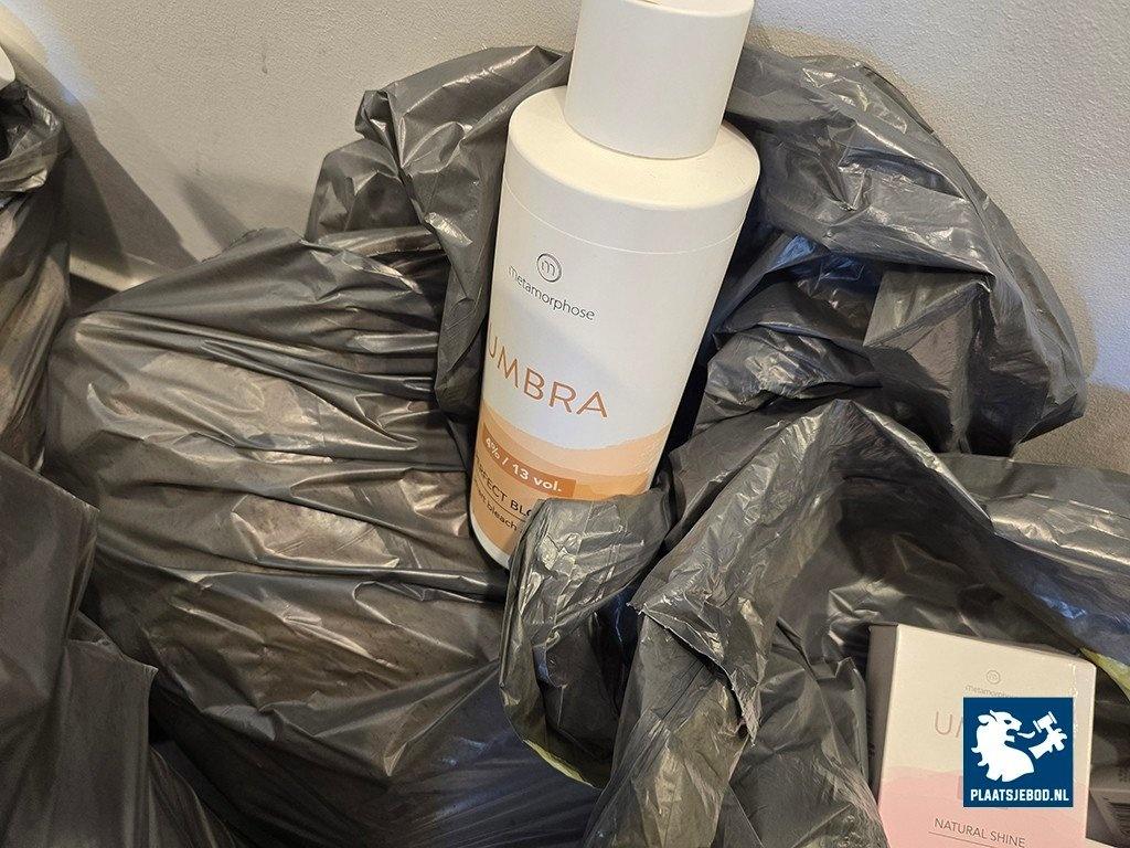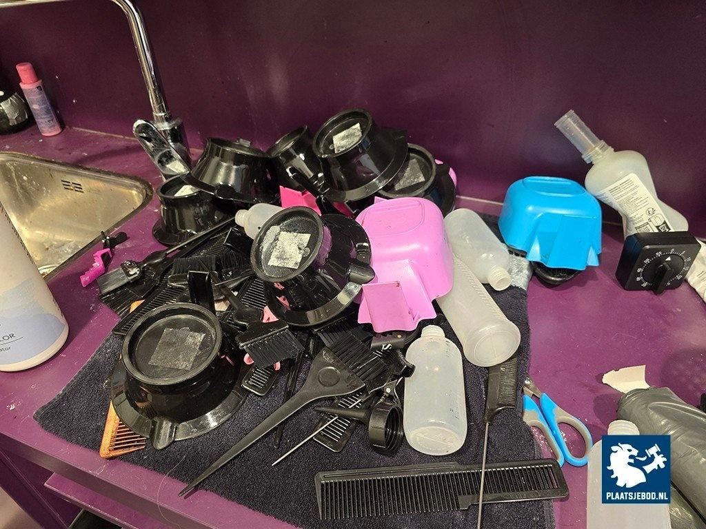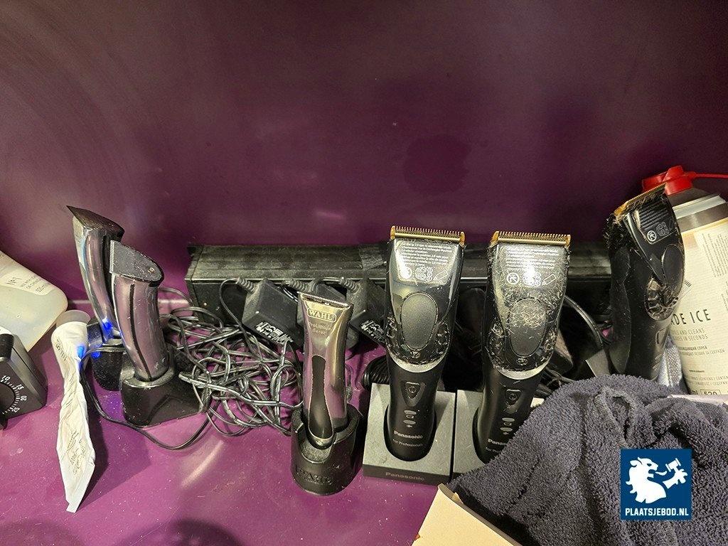 1 x Partij diverse haarverzorgingsproducten en diversen w.o. Accu tondeuses, schorten etc. LET OP: de Koper verplicht zich alle zaken in de kast mee te nemen!